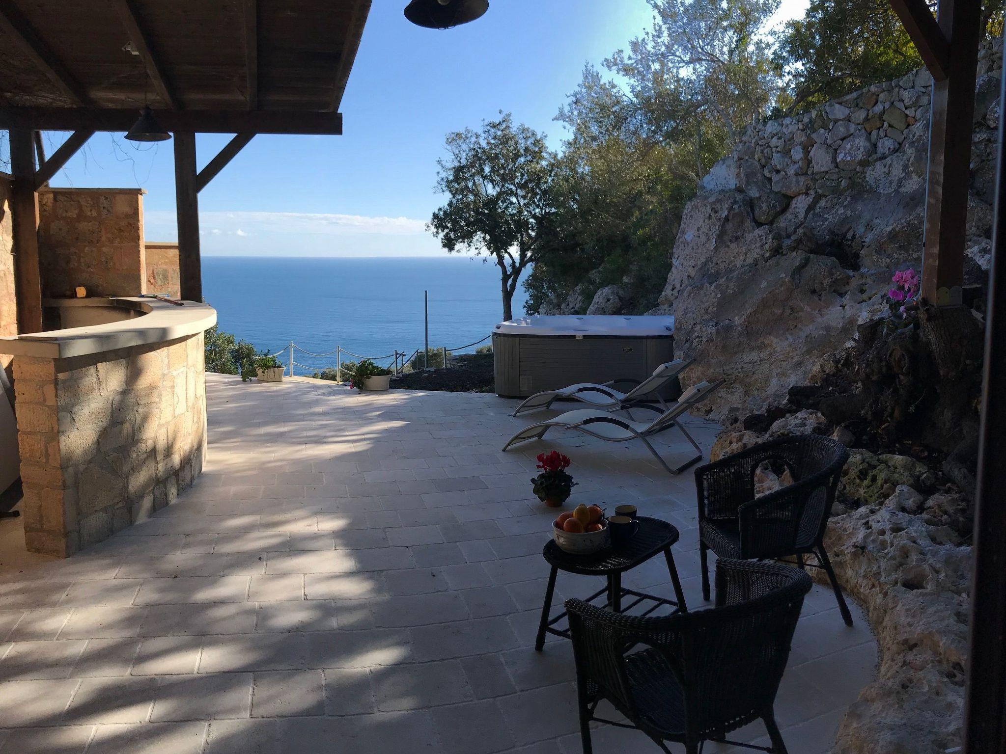 Das wahre Juwel der Villa Orchidea ist jedoch zweifellos ihr Äußeres. Die spektakuläre Dachterrasse, die exklusiv genutzt werden kann, ist wie eine private Oase, in der die Zeit stillzustehen scheint. Ausgestattet mit einer Korbsitzgruppe, einem Esstisch und Loungesesseln ist sie ideal, um im Freien zu essen oder einfach nur unter dem apulischen Himmel zu entspannen. Das Vorhandensein eines beheizten Whirlpools bietet die ultimative Entspannung mit einem atemberaubenden Blick auf das Meer und macht jeden Moment im Freien zu einem einzigartigen Erlebnis.