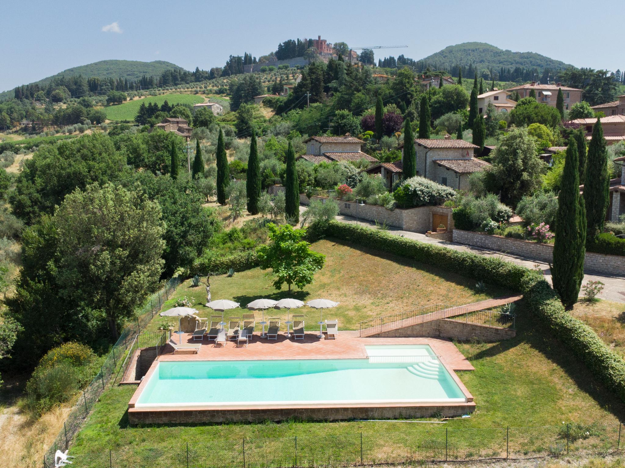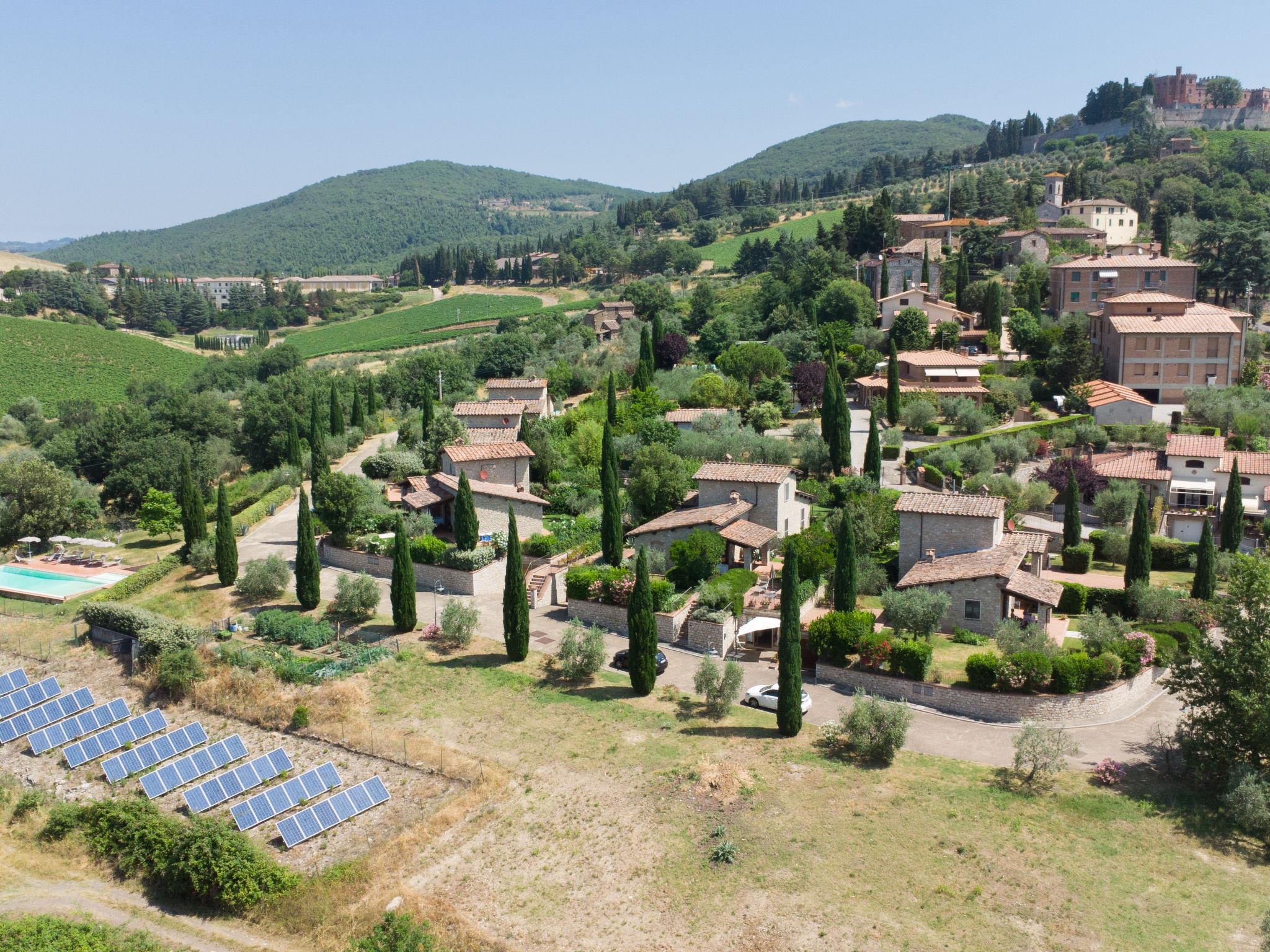 Ferienanlage "San Regolo", 460 m.ü.M.. 6 Häuser im Ferienresort. Im Weiler San Regolo, 10 km vom Zentrum von Gaiole in Chianti, 16 km vom Zentrum von Radda in Chianti, 76 km vom Zentrum von Firenze, sonnige Lage auf einem Hügel, im Villenviertel, im Grünen. Zur Mitbenutzung: Schwimmbad (15 x 6 m, 120 - 220 cm tief, saisonale Verfügbarkeit: 01.Mai. - 25.Okt.). Kinderbecken, Aussendusche, Gartenmöbel, Poolpflege durch den Besitzer/Gärtner. In der Anlage: Empfang, Massage (extra). Zentralheizung, Wäscherei, Waschmaschine (zur Mitbenutzung), Heizung vor Ort zu zahlen (29.Mar. - 31.Okt.), Heizung nur verfügbar von 01.Nov. - 28.Mar.. Zur Verfügung: Fahrräder (6) (extra). Koch möglich (extra). Parkplatz auf dem Grundstück. E-Ladestation. Einkaufsgeschäft 10 km, Lebensmittelgeschäft 5 km, Supermarkt 10 km, Restaurant 1 km, Bushaltestelle 10 km, Sandstrand "Castiglione della Pescaia" 115 km, Thermalbad "Rapolano Terme" 26 km. Nahe gelegene Sehenswürdigkeiten: Castello di Brolio 2 km, Castelnuovo Berardenga 13 km, Siena 20 km, Castellina in Chianti 27 km, Greve in Chianti, Monteriggioni 35 km, Monte San Savino 39 km. Bitte beachten: geeignet für Familien. Das Foto ist nur ein Hausbeispiel.