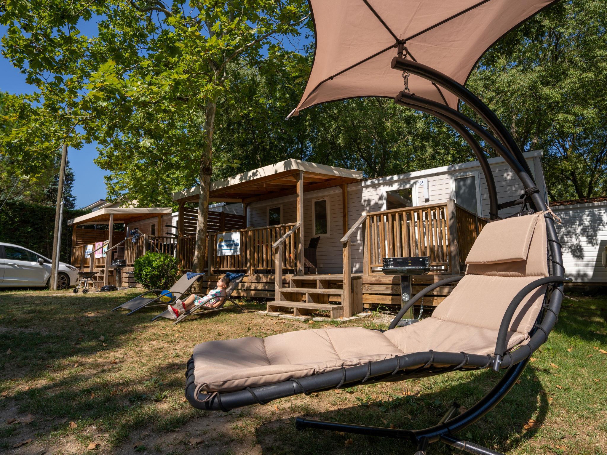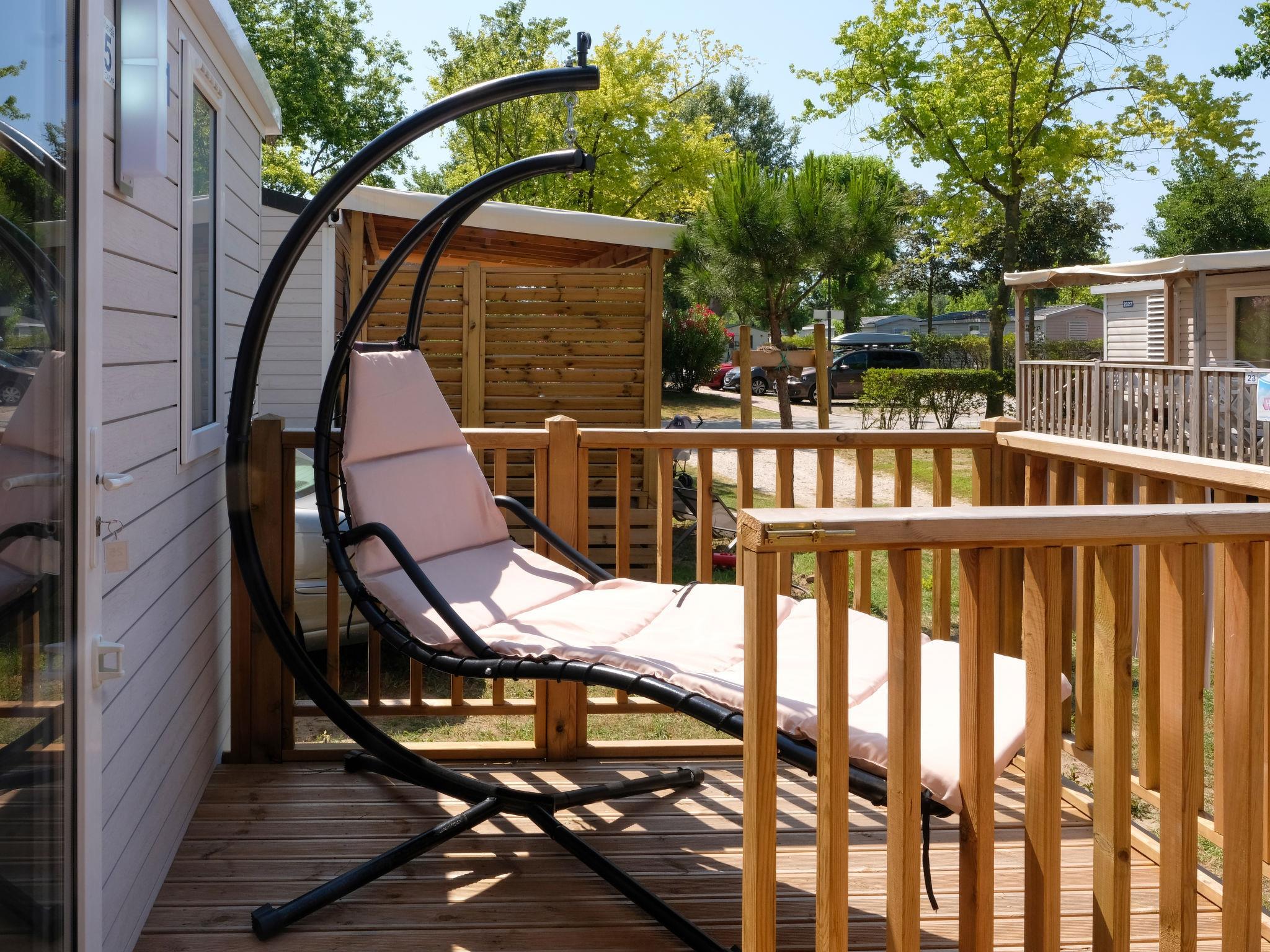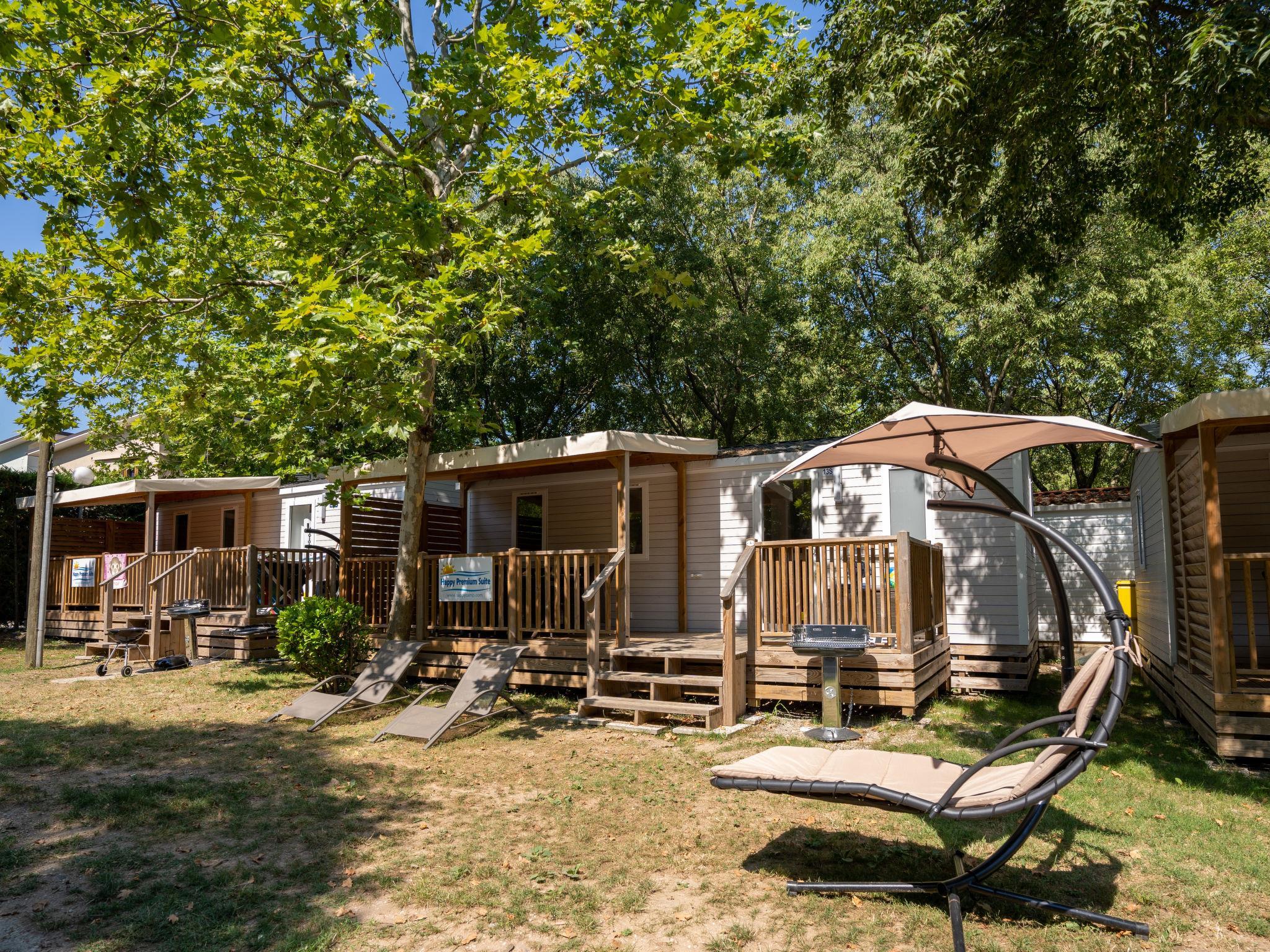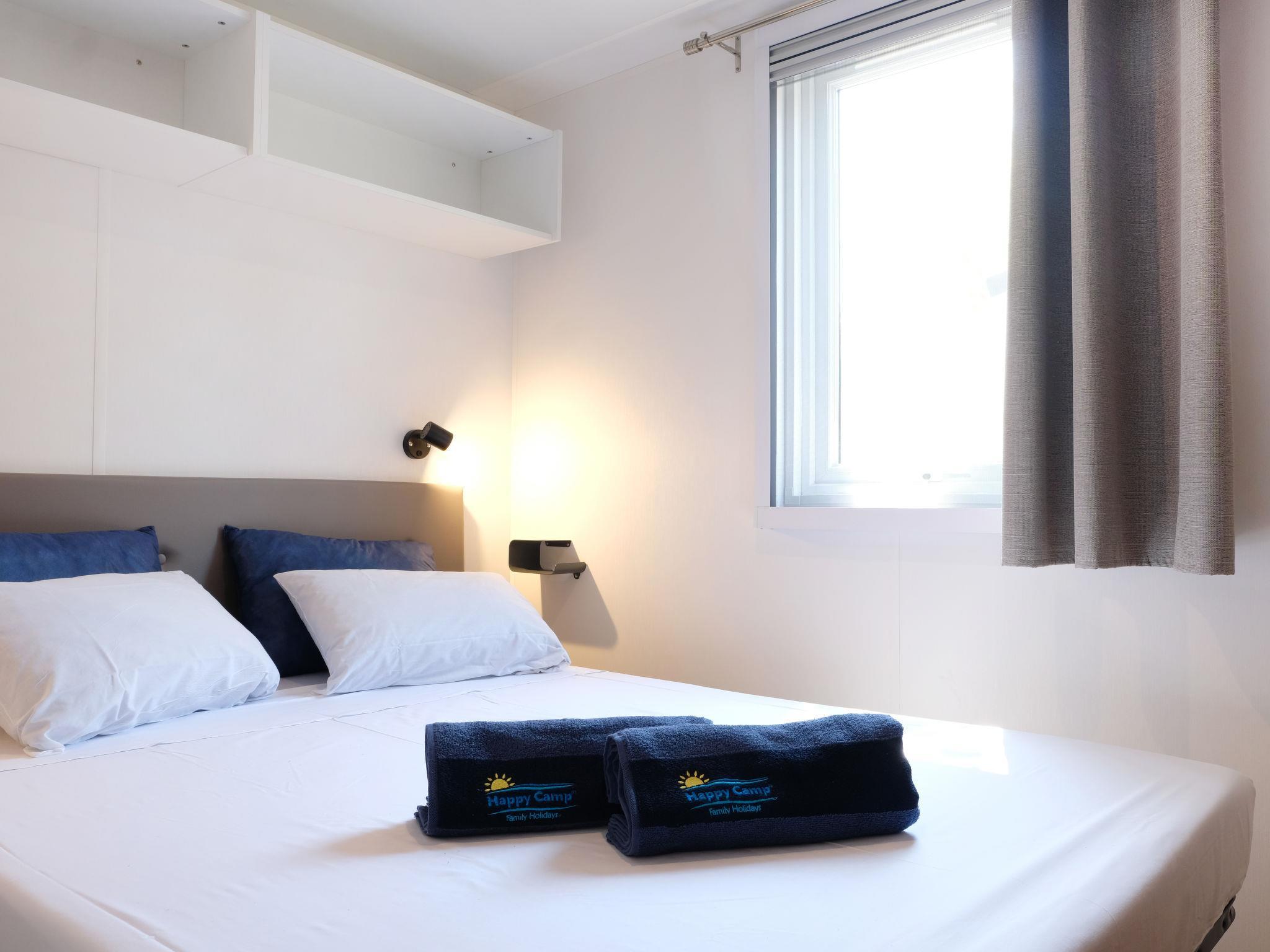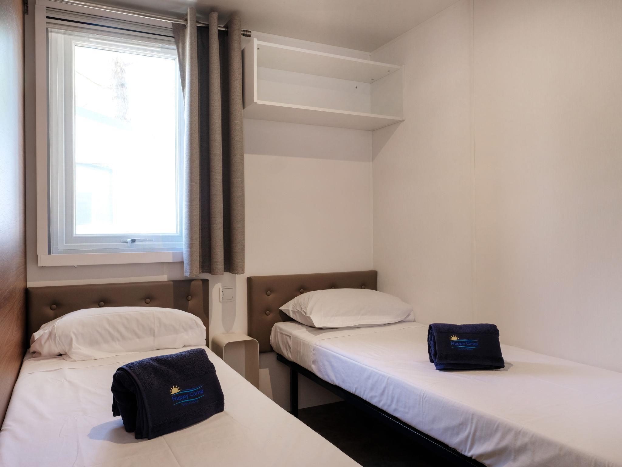 "Happy Premium Suite", 4-Zimmer-Mobilheim 30 m2. Komfortabel eingerichtet: Wohn-/Esszimmer mit E-Heizung und Klimaanlage. 1 Zimmer mit 1 franz. Bett (140 cm, Länge 190 cm). 2 Zimmer, jedes Zimmer mit 2 Betten (70 cm, Länge 190 cm). Offene Küche (4 Kochplatten, Mikrowelle, Tiefkühler, elektrische Kaffeemaschine). Dusche/WC. Klimaanlage (extra). Terrasse teilweise überdacht. Terrassenmöbel, Elektrogrill (mobil), Liegestühle (2). Zur Verfügung: Fliegengitter. Parkplatz (1 Auto). Bitte beachten: Nichtraucher-Unterkunft. Maximal 1 kleines Haustier/Hund erlaubt. Flexibilität bei der Bettenaufteilung: Es stehen mehr Schlafmöglichkeiten zur Verfügung als die maximal zugelassene Personenzahl, diese darf dennoch nicht überschritten werden. IT075031B100021589