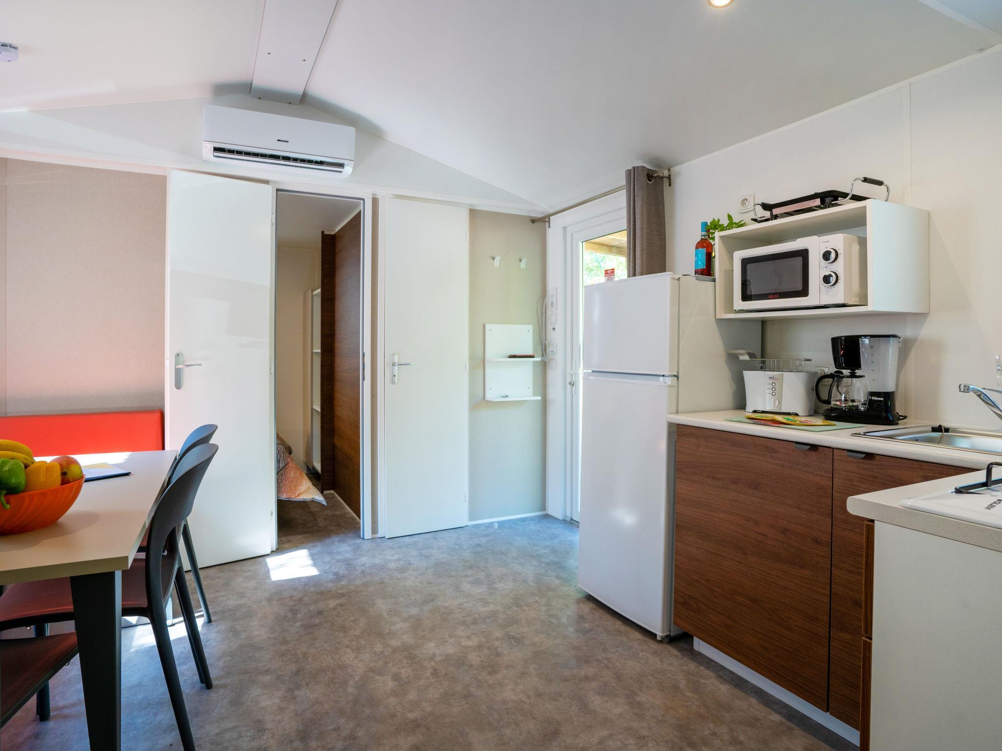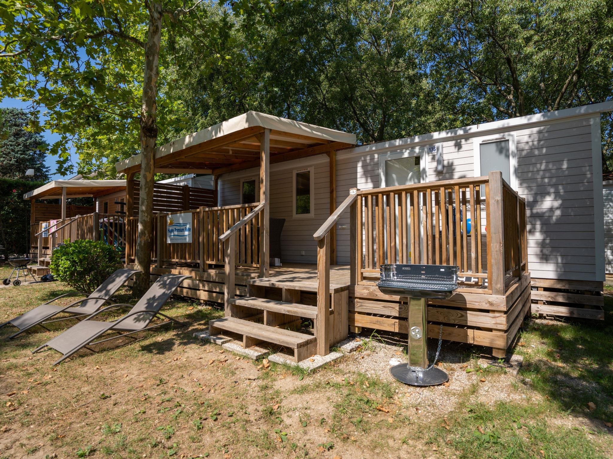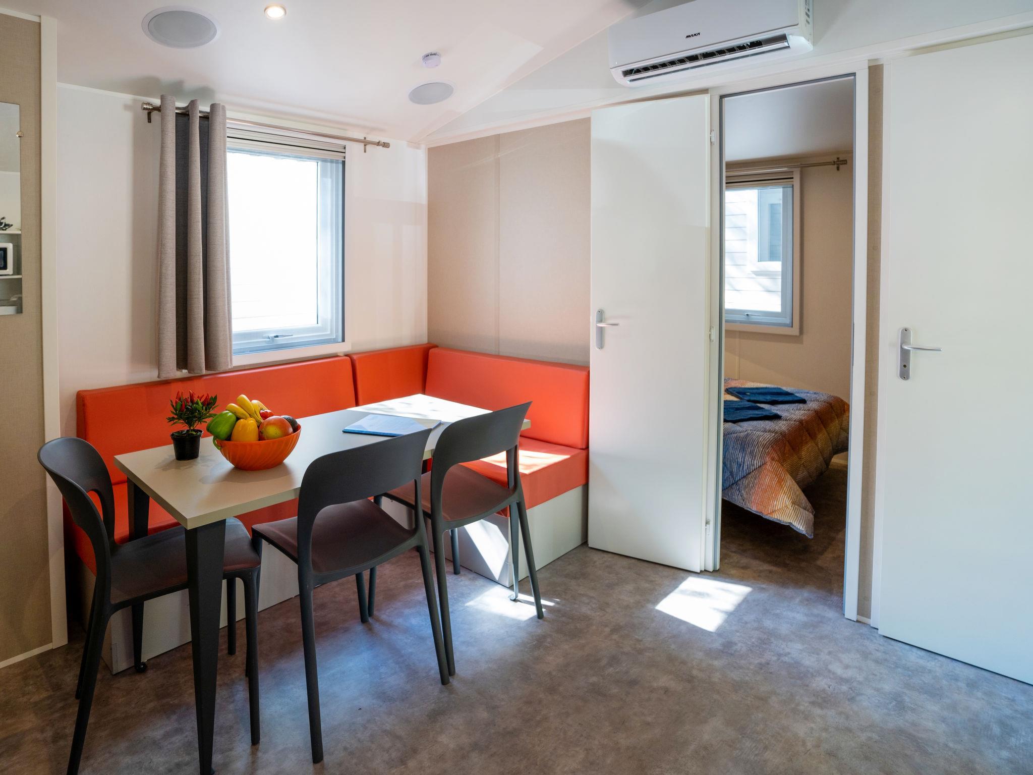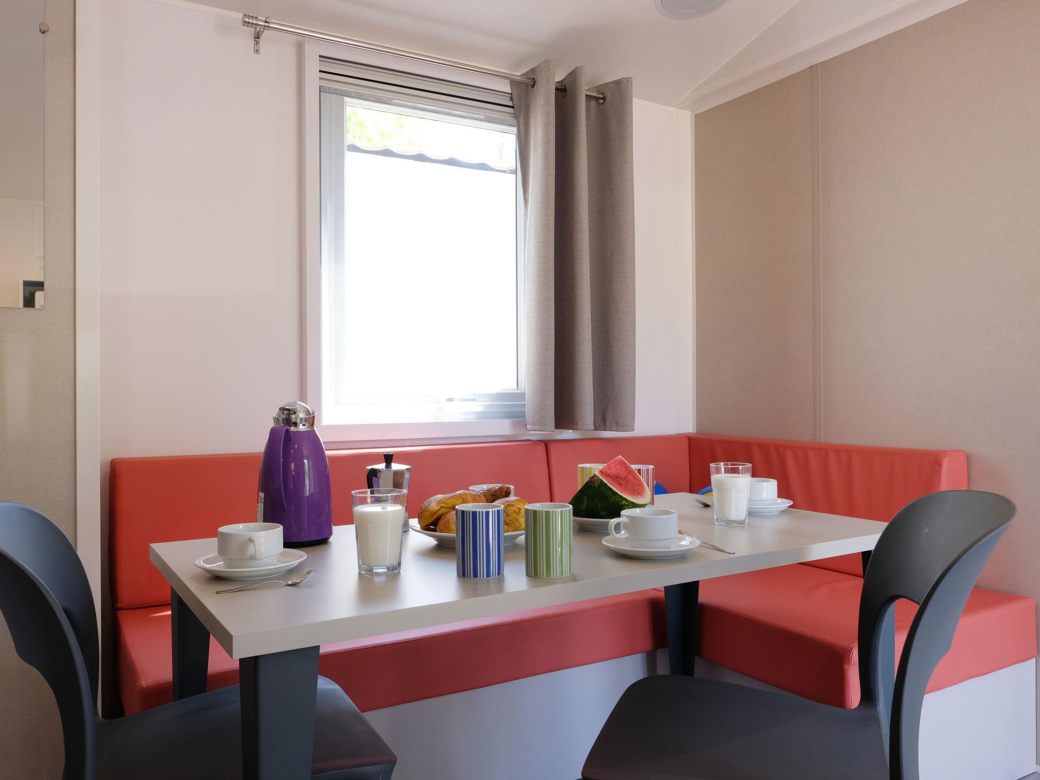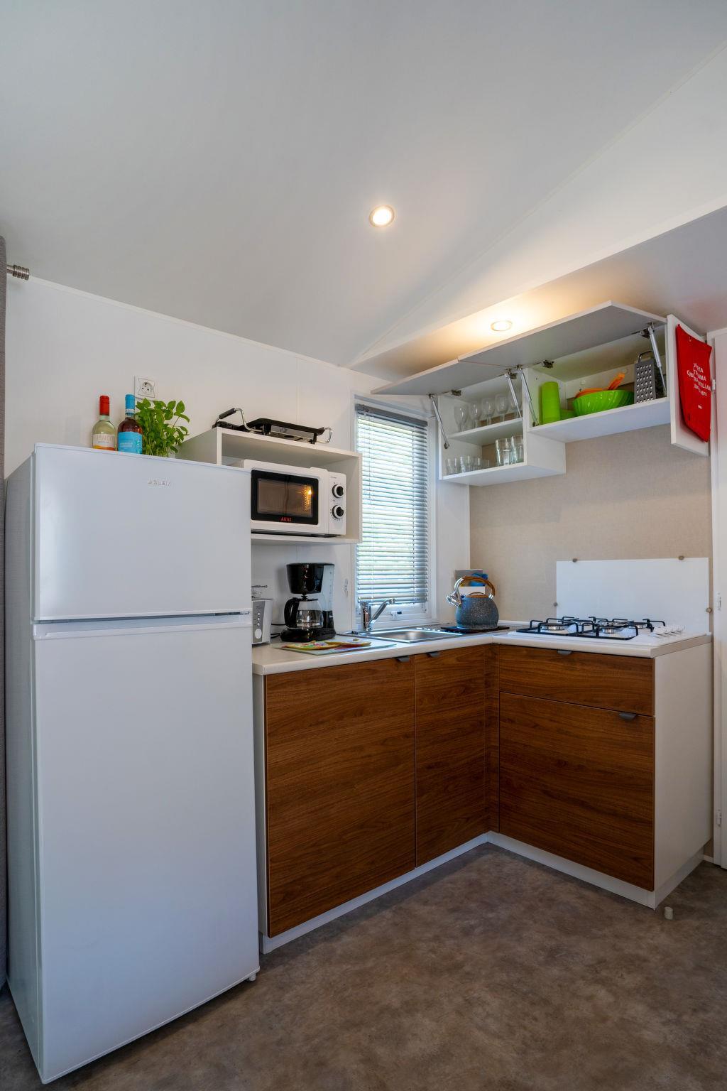 "Happy Premium Suite", 4-Zimmer-Mobilheim 30 m2. Komfortabel eingerichtet: Wohn-/Esszimmer mit E-Heizung und Klimaanlage. 1 Zimmer mit 1 franz. Bett (140 cm, Länge 190 cm). 2 Zimmer, jedes Zimmer mit 2 Betten (70 cm, Länge 190 cm). Offene Küche (4 Kochplatten, Mikrowelle, Tiefkühler, elektrische Kaffeemaschine). Dusche/WC. Klimaanlage (extra). Terrasse teilweise überdacht. Terrassenmöbel, Elektrogrill (mobil), Liegestühle (2). Zur Verfügung: Fliegengitter. Parkplatz (1 Auto). Bitte beachten: Nichtraucher-Unterkunft. Maximal 1 kleines Haustier/Hund erlaubt. Flexibilität bei der Bettenaufteilung: Es stehen mehr Schlafmöglichkeiten zur Verfügung als die maximal zugelassene Personenzahl, diese darf dennoch nicht überschritten werden. IT075031B100021589