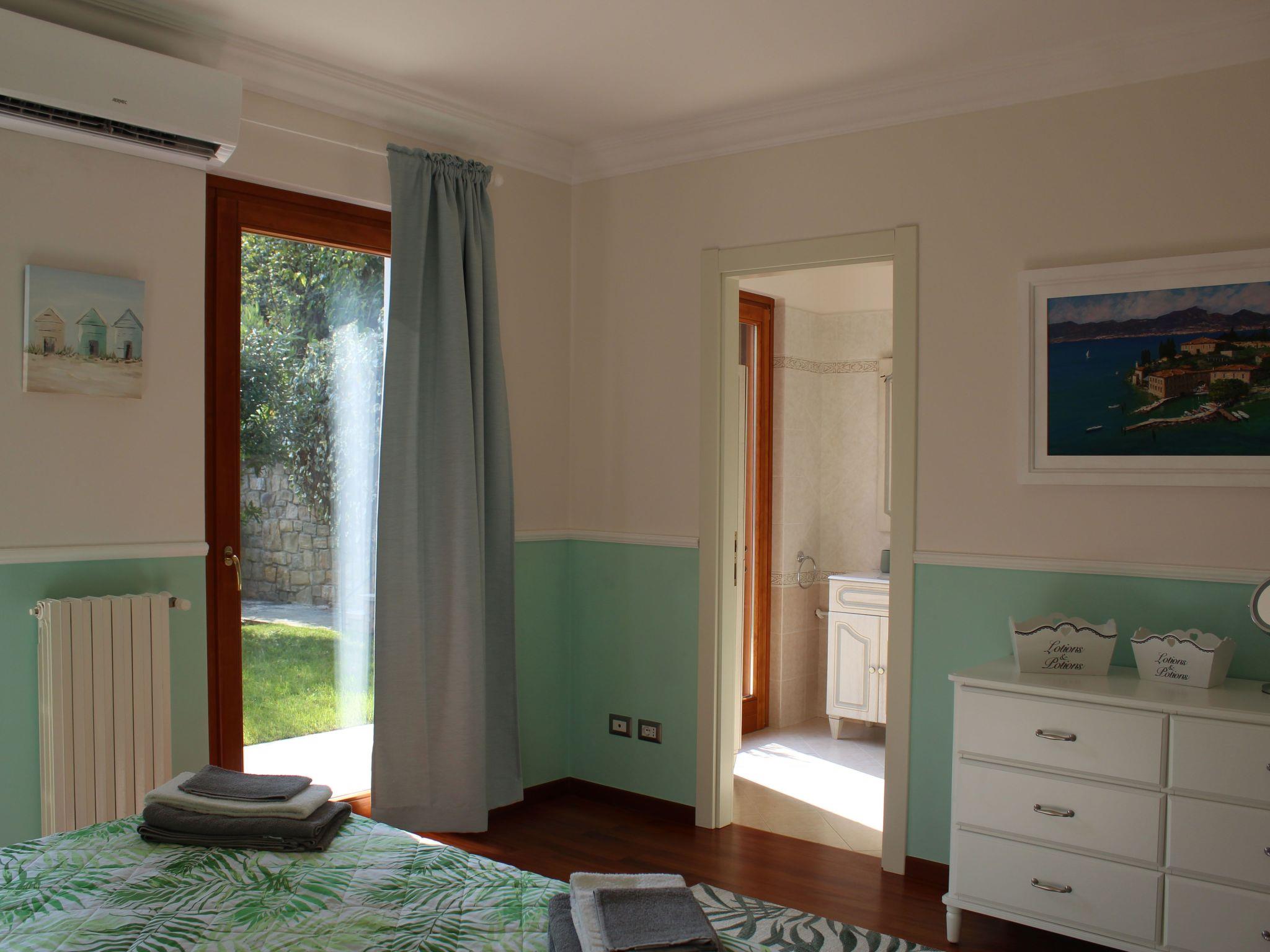 Dieses schöne, freistehende Haus, das erst kürzlich (Ende 2019) renoviert wurde, befindet sich in einem Wohnkomplex, mit dem es sich ein Schwimmbad teilt. Der Eingang zum Haus ist privat von der Straße auf der oberen Seite des Komplexes (Via Belvedere), wo es auch einen kostenlosen Parkplatz direkt neben dem Tor gibt. Um das Haus von der Straße aus zu erreichen, gibt es eine Treppe mit etwa zwei Stufen. Vor dem Haus gibt es einen Zugang zu einem privaten Garten mit einem großen überdachten und gepflasterten Bereich, wo man draußen essen kann, während man den schönen Seeblick genießt. Am Eingang zum Garten gibt es auch eine private Terrasse mit Liegestühlen, die einen weiteren atemberaubenden Blick auf den Gardasee bietet.