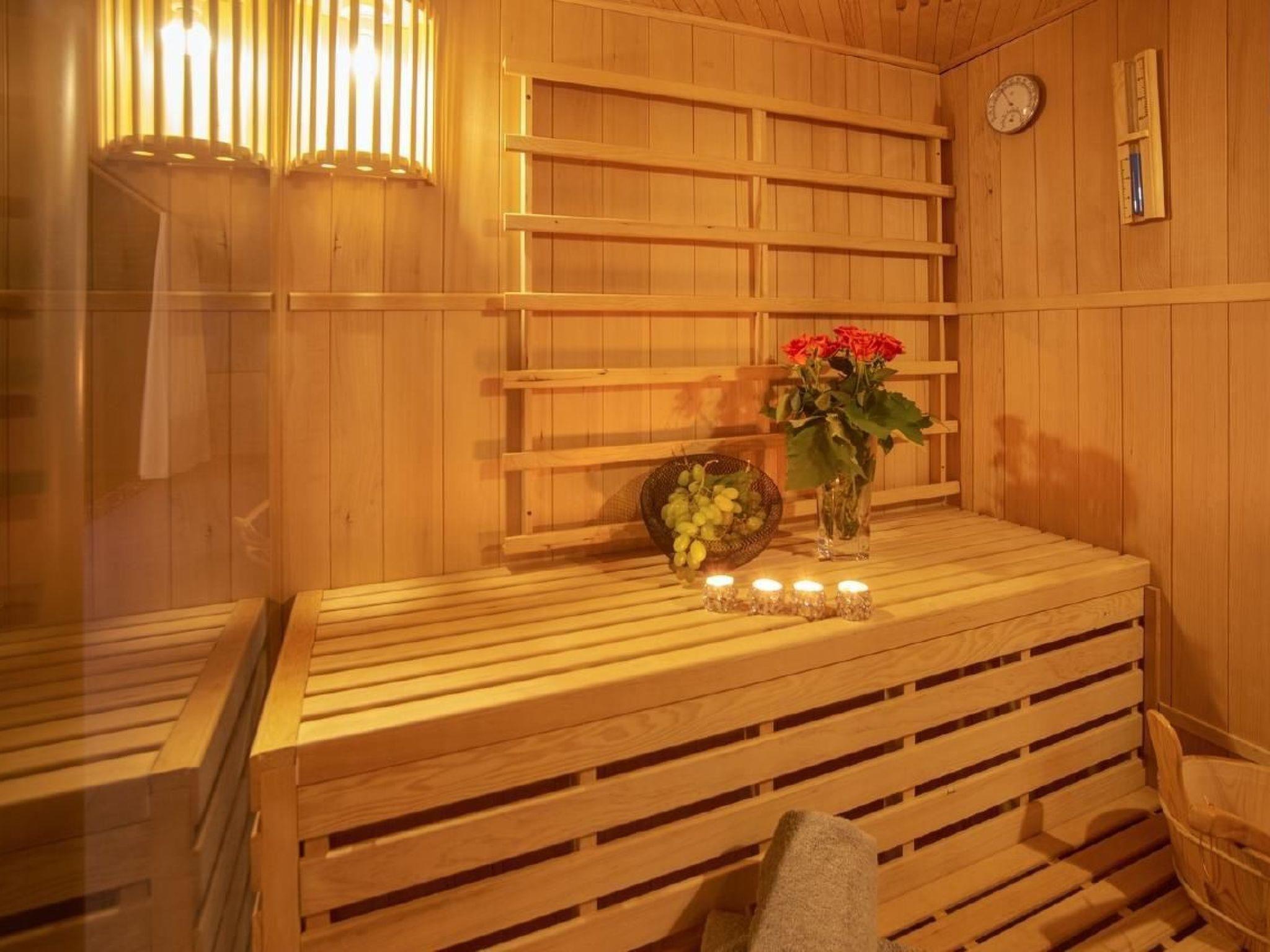 Der Außenbereich mit Blick auf den privaten Garten besteht aus einer Außenküche, einem Barbereich, einem Tisch für 5/6 Personen, einer finnischen Sauna, einem Whirlpool und einer Außendusche.