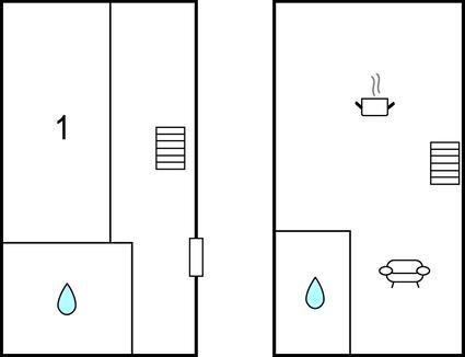Badezimmer (nr. 1) - WC. Warmes und kaltes Wasser. Dusche