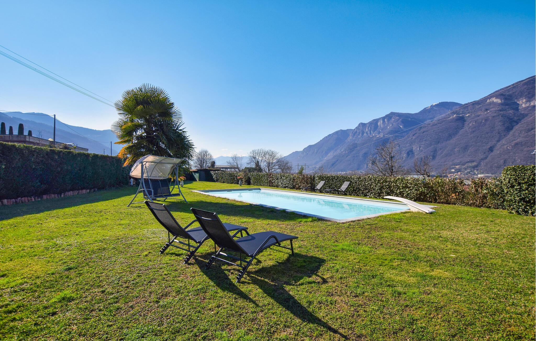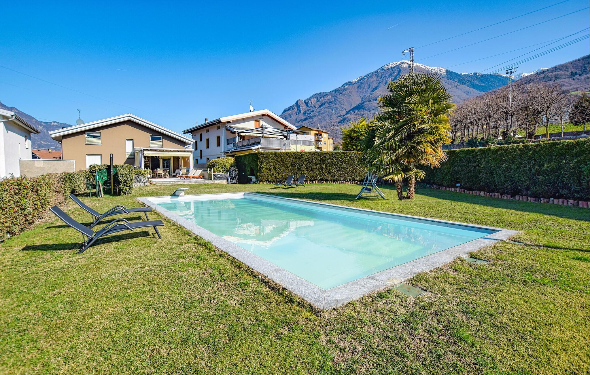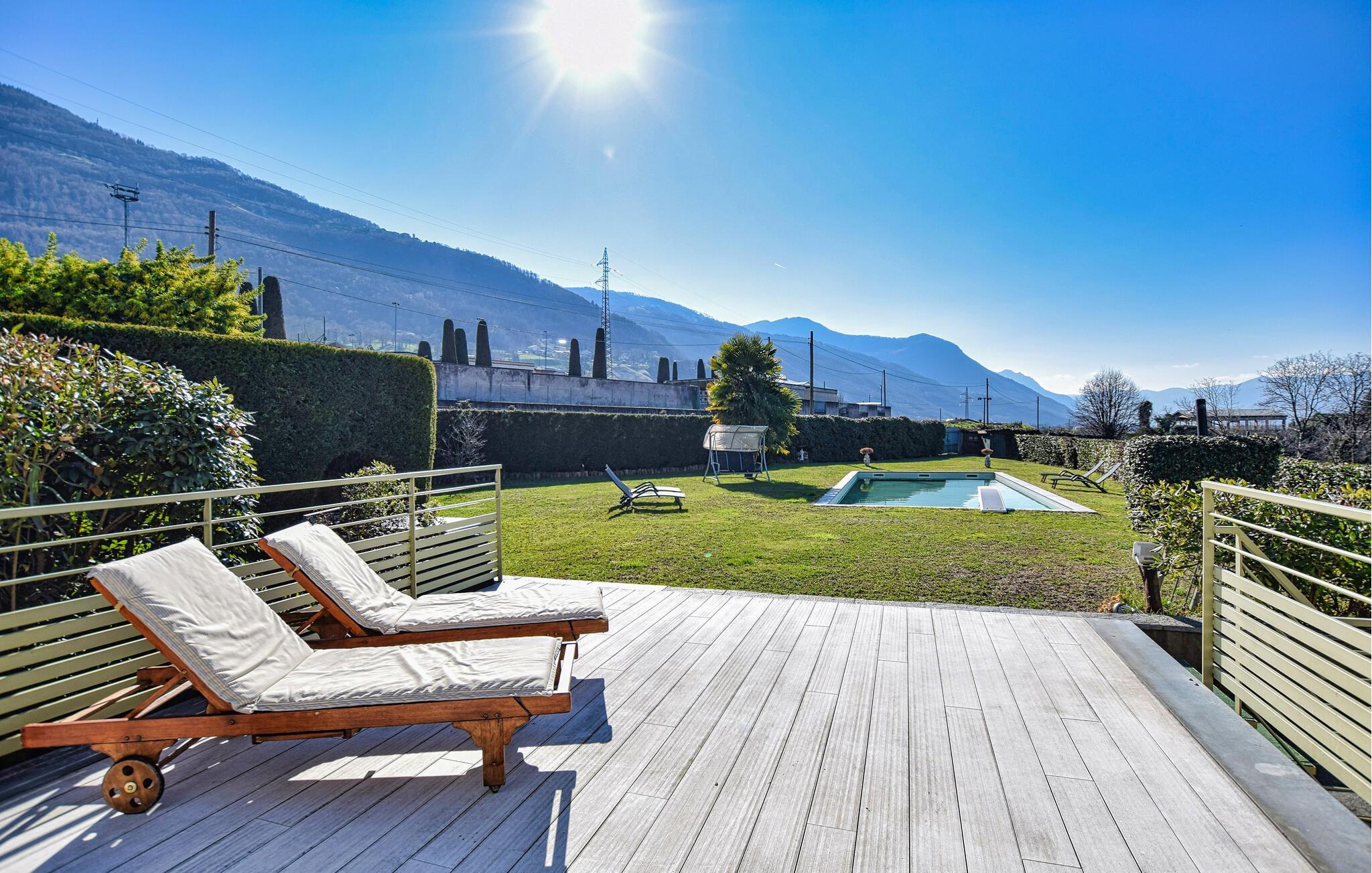 Genießen Sie entspannte Tage in diesem stilvollen Ferienhaus mit Pool und Panoramablick auf die Berge.