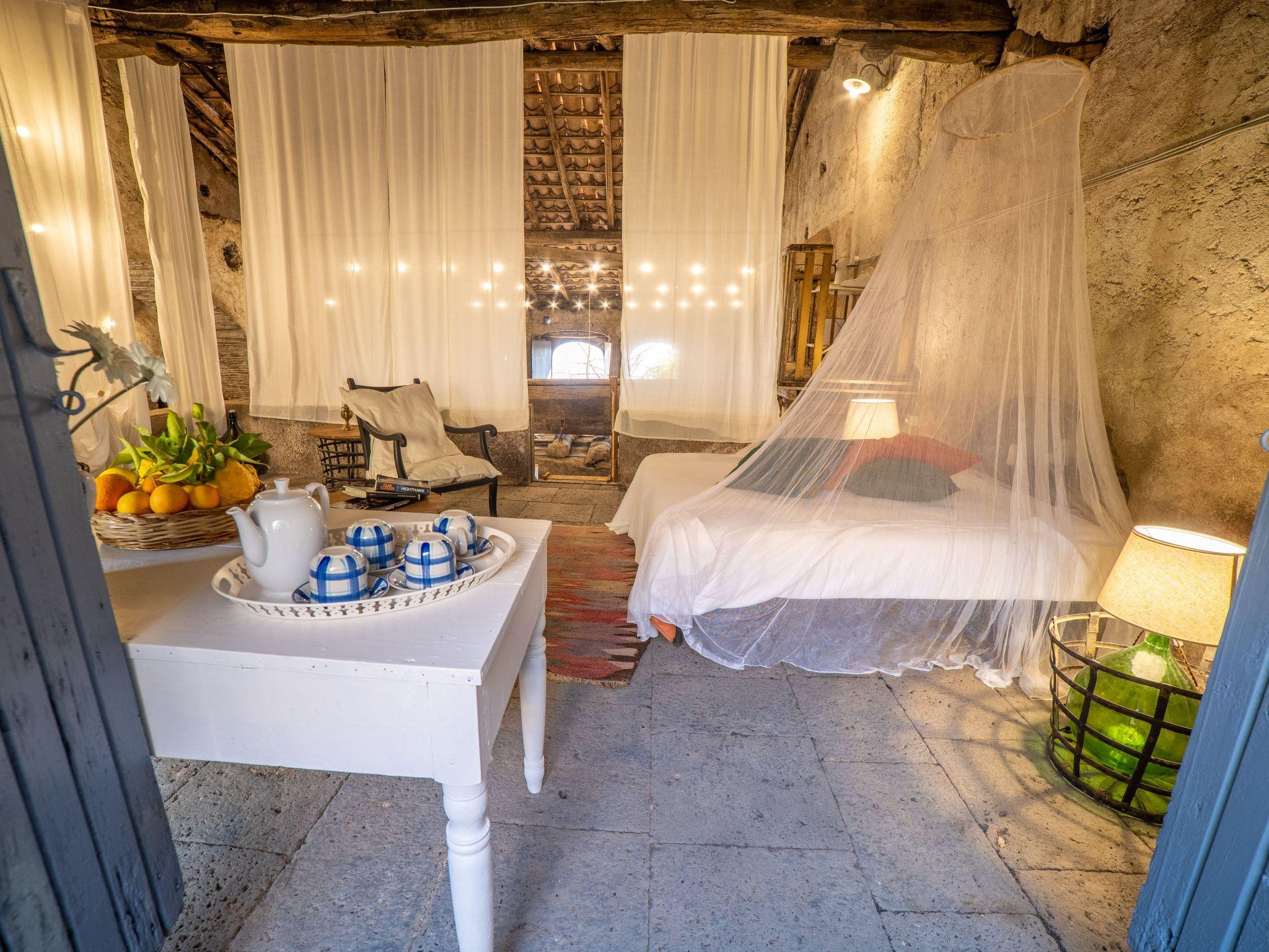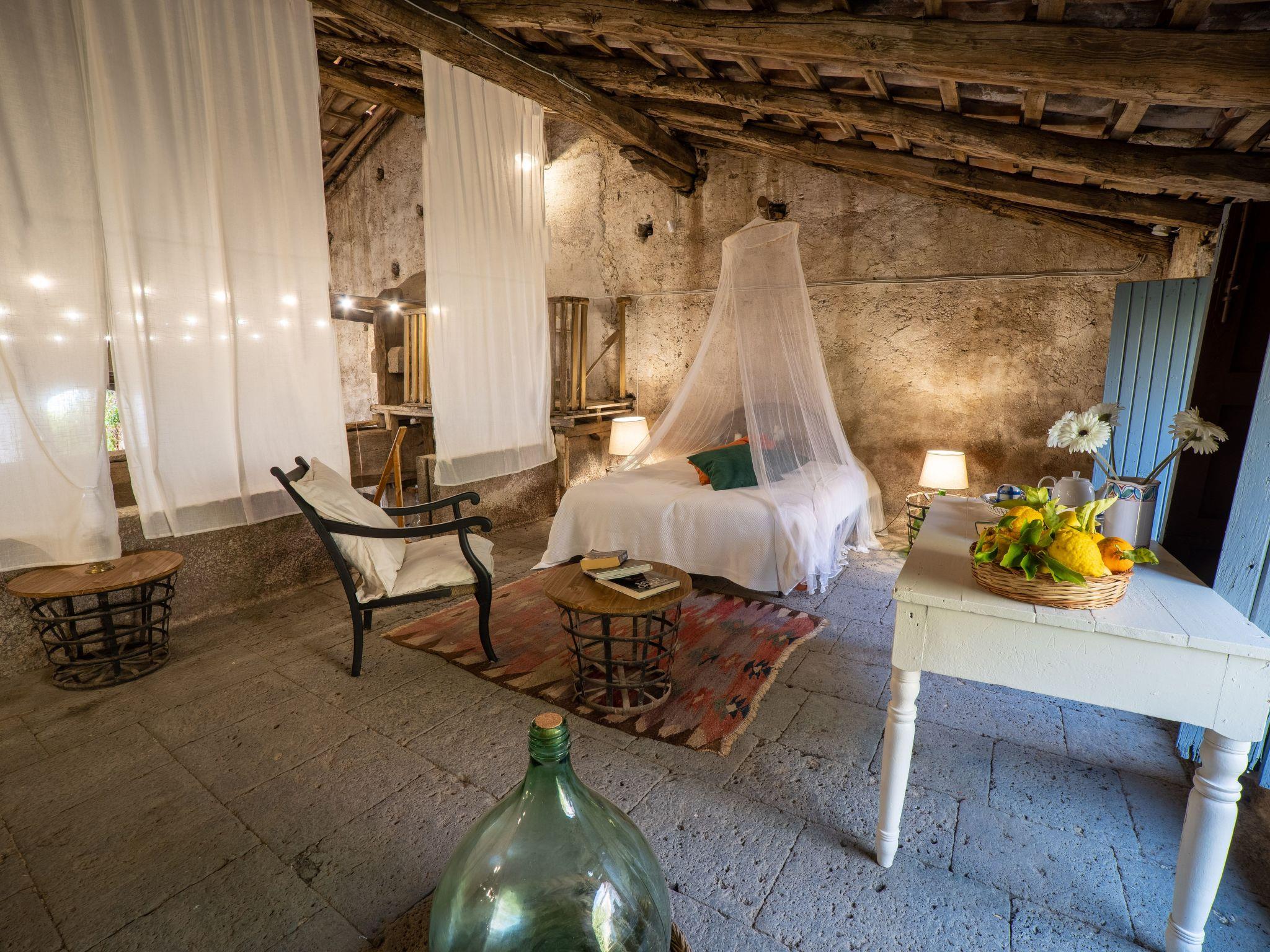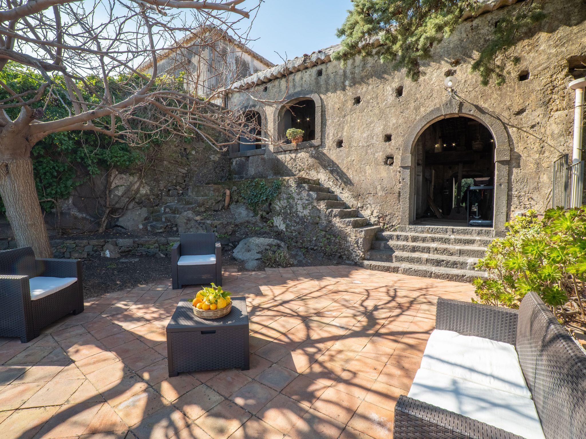 Mamma Agata ist eine wunderschöne, alte Villa (Ende des 18. Jahrhunderts) voller Charme, in der Sie die Landluft vergangener Zeiten einatmen können. Antike Gegenstände und Möbel erzählen Ihnen vom echten Sizilien, zusammen mit Außenbereichen voller Grün, Bäumen und Sukkulenten aller Art. Die Villa ist strategisch günstig zwischen dem Ätna und dem Meer gelegen... und was für ein Meer! An einem klaren Tag können Sie sogar das berühmte Taormina sehen. Am Eingang nach dem Außentor befindet sich ein Park, in dem man auch Autos parken kann. Eine Treppe führt hinauf zum Eingang des Hauses. Neben dem Haupthaus befindet sich der schöne Palmento, einer der imposantesten in Sizilien, der Ort, an dem einst die Trauben geerntet, gepresst und dann zu Most und schließlich zu Wein verarbeitet wurden.
