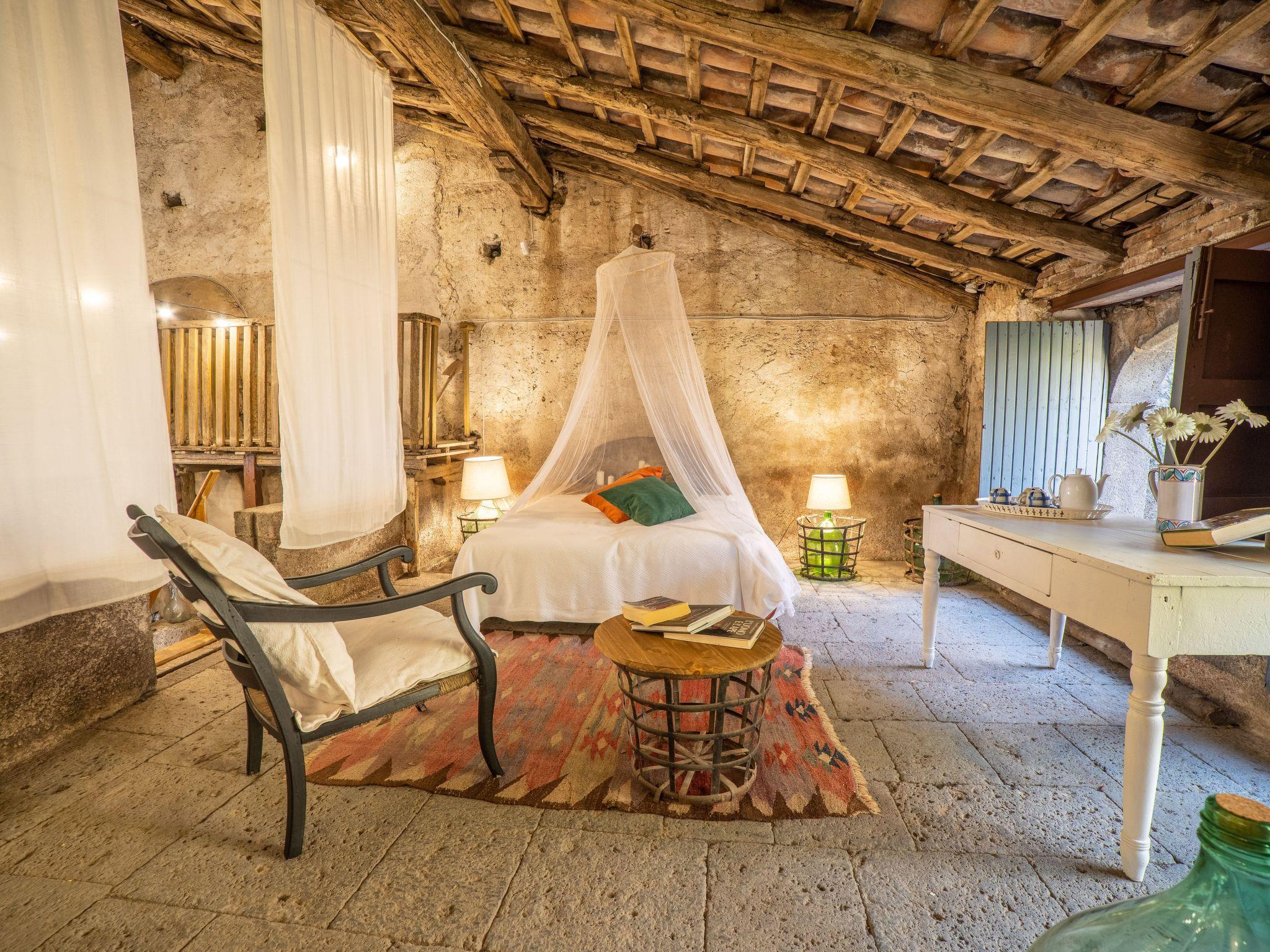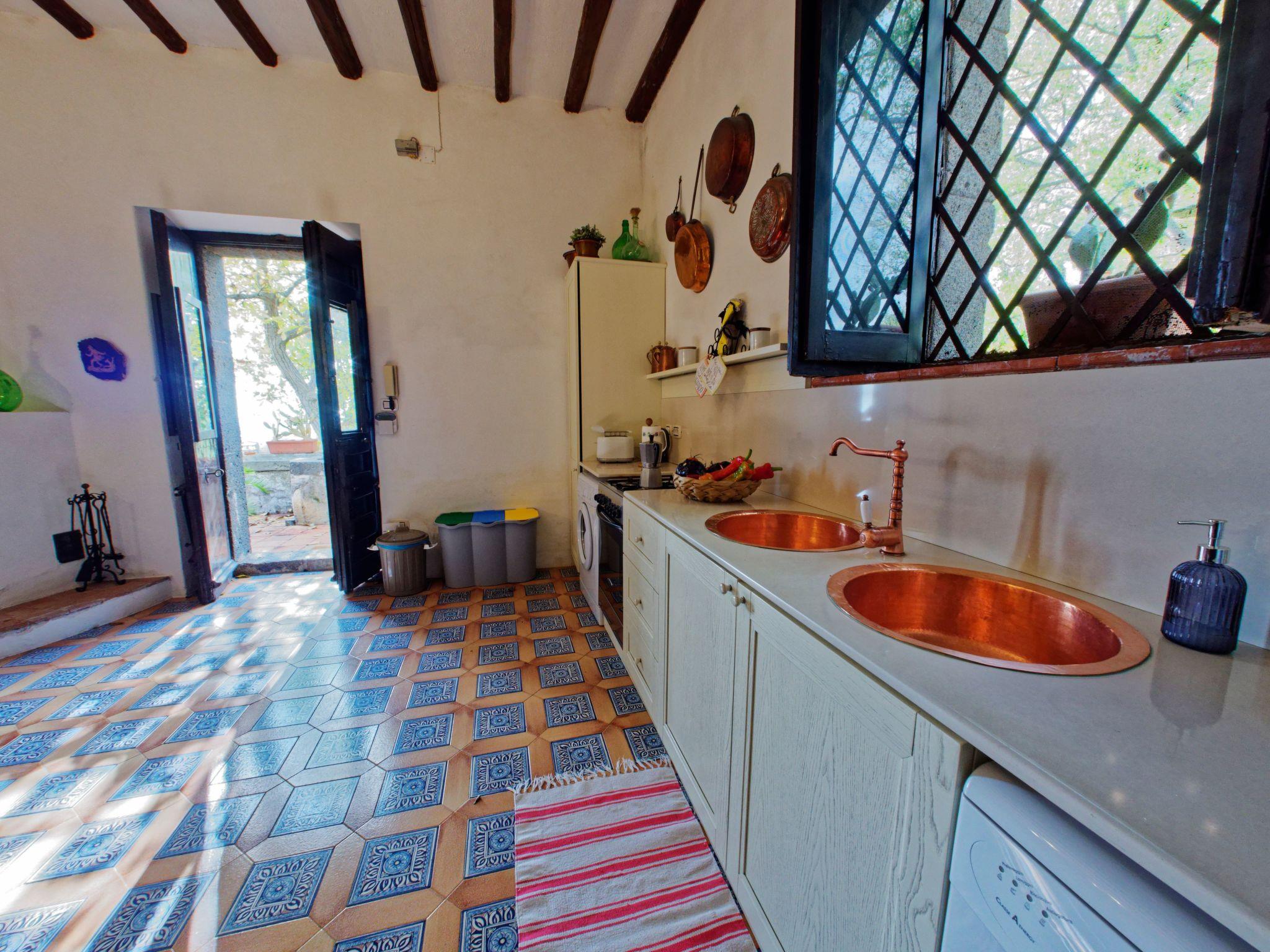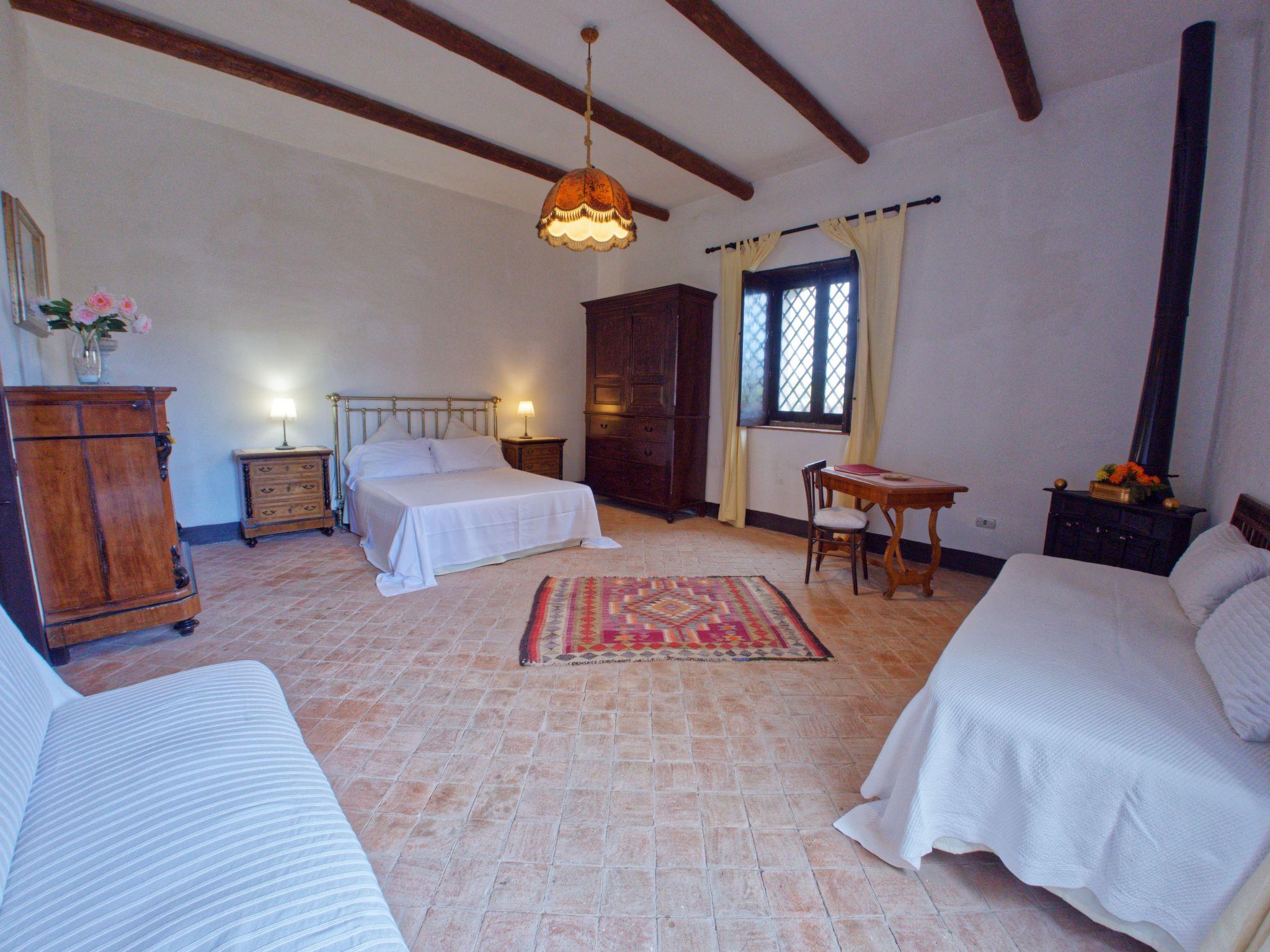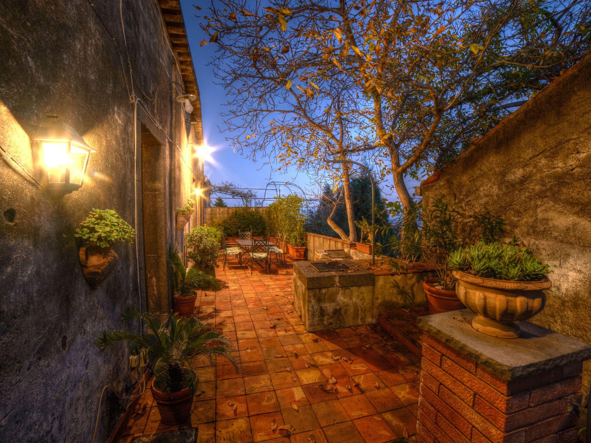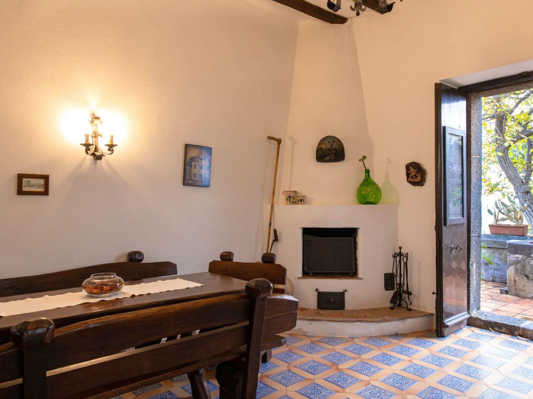 Bevor Sie das Haus betreten, überqueren Sie eine kleine Terrasse mit Tisch und Stühlen, wo Sie im Schatten eines großen Walnussbaums essen können. Das ganze Haus erstreckt sich über eine Etage. Man betritt die Küche. Sie ist rustikal und gemütlich und hat alles, was man braucht. Das Wohnzimmer befindet sich in der Mitte des Hauses, elegant, hell und mit antiken Möbeln ausgestattet. Die Fenstertür öffnet sich auf einen weiteren Innenhof hinter dem Haus. Auch hier gibt es eine Ecke mit Tisch und Stühlen zum Entspannen. Es gibt drei Schlafzimmer. Zwei Doppel- und ein Einzelzimmer. Das Hauptschlafzimmer ist sehr geräumig; es gibt auch ein Einzelbett neben dem Doppelbett, einen Schreibtisch, einen Kleiderschrank, eine Kommode... Die letzten beiden sind kleiner und gehen auf die Terrasse hinaus, die ebenfalls elegant ist. Außerdem können sie durch eine Tür miteinander kommunizieren. Es gibt zwei Bäder, die nahe beieinander liegen. Beide mit Duschen. Im Inneren des rustikalen "Palmento", mit einer Decke aus Holzbalken und ganz aus Lavastein gebaut, genau in dem Bereich, in dem die Bauern durch die beiden Fenster die Trauben für die erste Ernte in das Becken schütteten, gibt es eine Art Alkoven mit einem Doppelbett, eine fast mystische Erfahrung würde ich sagen, dieses Zimmer, wie in einer Höhle zu schlafen, aber eine Höhle voller lustiger Zeitvertreibe! Heute wurde dieser außergewöhnliche historische Ort von den Eigentümern in einen Ort des Vergnügens verwandelt, mit Laufbändern, Heimtrainern, Billard, Tischtennis, Tischfußball und einer Ecke mit Schach und Dame. In einem der Schlafzimmer und im Wohnzimmer gibt es eine Klimaanlage, die günstig gelegen ist, um alle anderen Räume zu kühlen. Alles darüber hinaus wird in Rechnung gestellt.