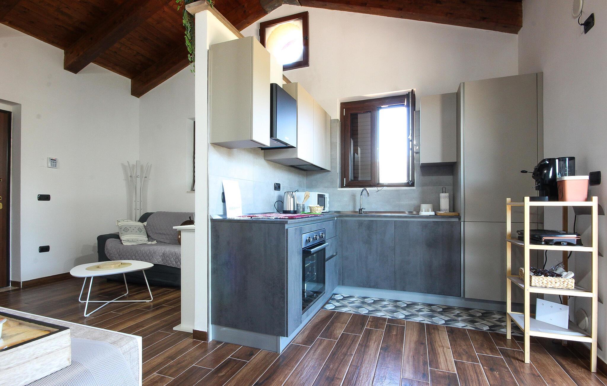 Dieses Ferienhaus vereint Modernität und Gemütlichkeit und bietet einen entspannten Rückzugsort für Ihre Urlaubstage. Rustikale Balkendecken und dezente Farben kombiniert mit fröhlichen Farbtupfern schaffen eine angenehme Atmosphäre für Ihre Fernsehabende oder Gespräche zu zweit. Bereiten Sie in der modernen Küche leckere Speisen zu und verwöhnen Sie Ihre Lieben mit einem Glas Wein.