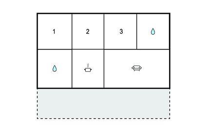 Badezimmer (nr. 1) - WC. Warmes und kaltes Wasser. Dusche