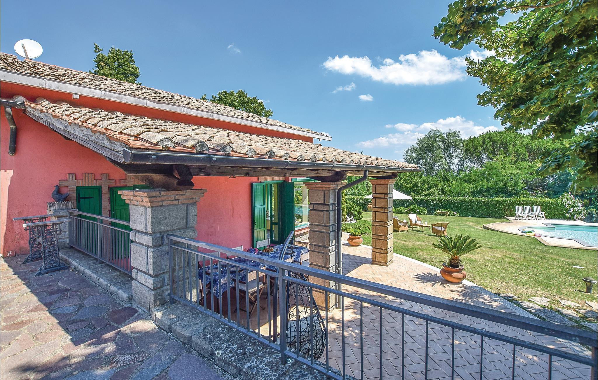 Ferienhaus mit privatem Pool und Panoramablick auf den Bolsena See nah an Gradoli (Viterbo). Die schattige ausgestattete Veranda am Pool, die Außenküche und der eingebaute Grill ermöglichen es Ihnen, angenehm im Freien zu essen. Die vierbeinigen Freunde sind willkommen. Die Lage dieses Hauses ist ideal, um einige der malerischsten Gegenden zwischen Latium und der Toskana zu besuchen. Der Bolsenasee mit den Touristenorten Merta, Capodimonte, Montefiascone und Bolsena ist nur 8 km entfernt. Civita di Bagnoregio mit seinem alten Dorf ist 24 km entfernt. Ein 9-Loch-Golfclub ist nur 16 km entfernt. Das Meer mit dem feinen Sandstrand von Marina di Montalto ist 40 km entfernt. Die Strände von Argentario 76 km, die Thermaleinrichtungen in Vulci 32 km, die berühmtesten Terme di Saturnia (Grosseto) 54 km. In wenigen Kilometer erreichen Sie die Toskana mit seinen wunderschönen Landschaften, die sie auszeichnen. Hier sind die charakteristischen Dörfer wie Pitigliano 15 km, Sorano 22 km, Manciano 35 km. Monte Amiata und Abbadia Salvatore 45 km, Montalcino - weltberühmt für seinen 77 km Brunello Wein sicherlich einen Besuch Wert. Siena ist leicht erreichbar in 1 Stunde 50 Auto und 108 km entlang der antiken Via Cassia.