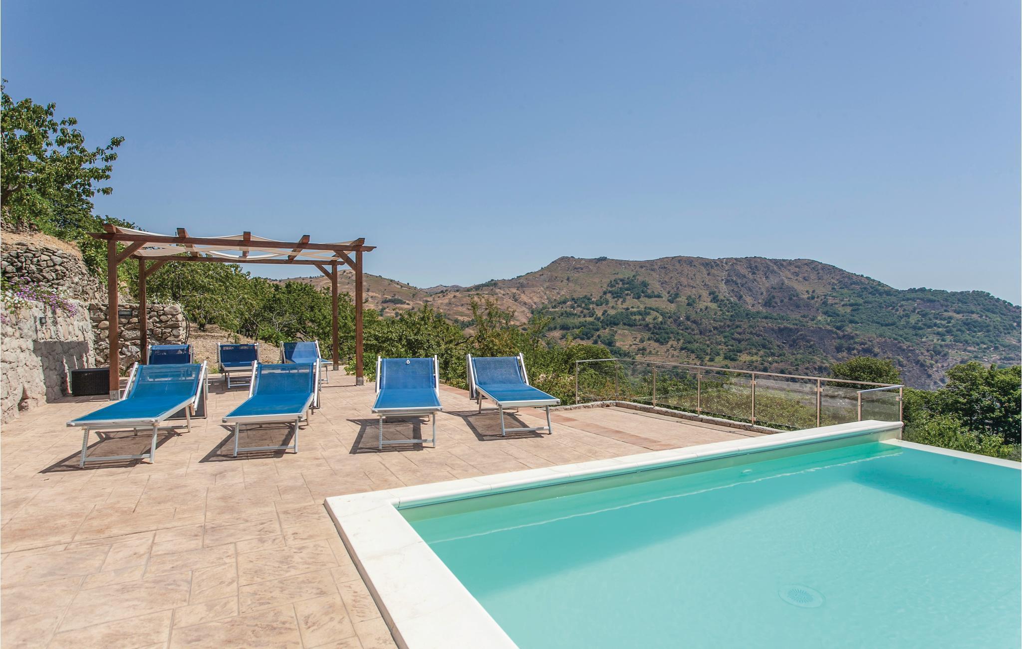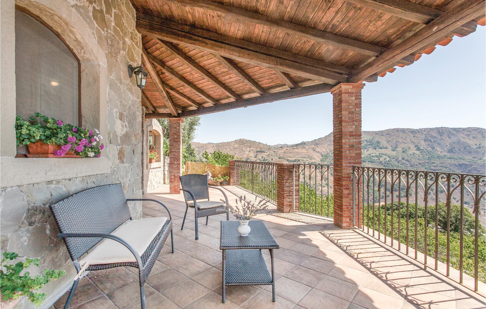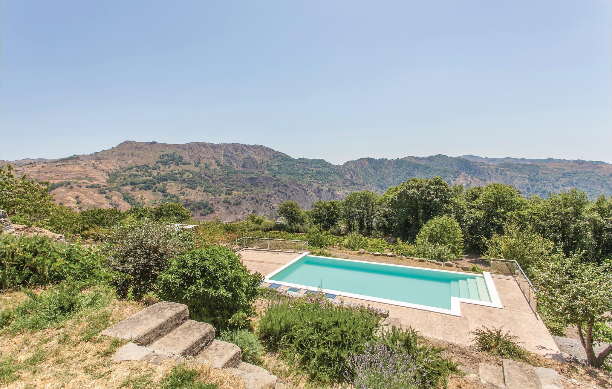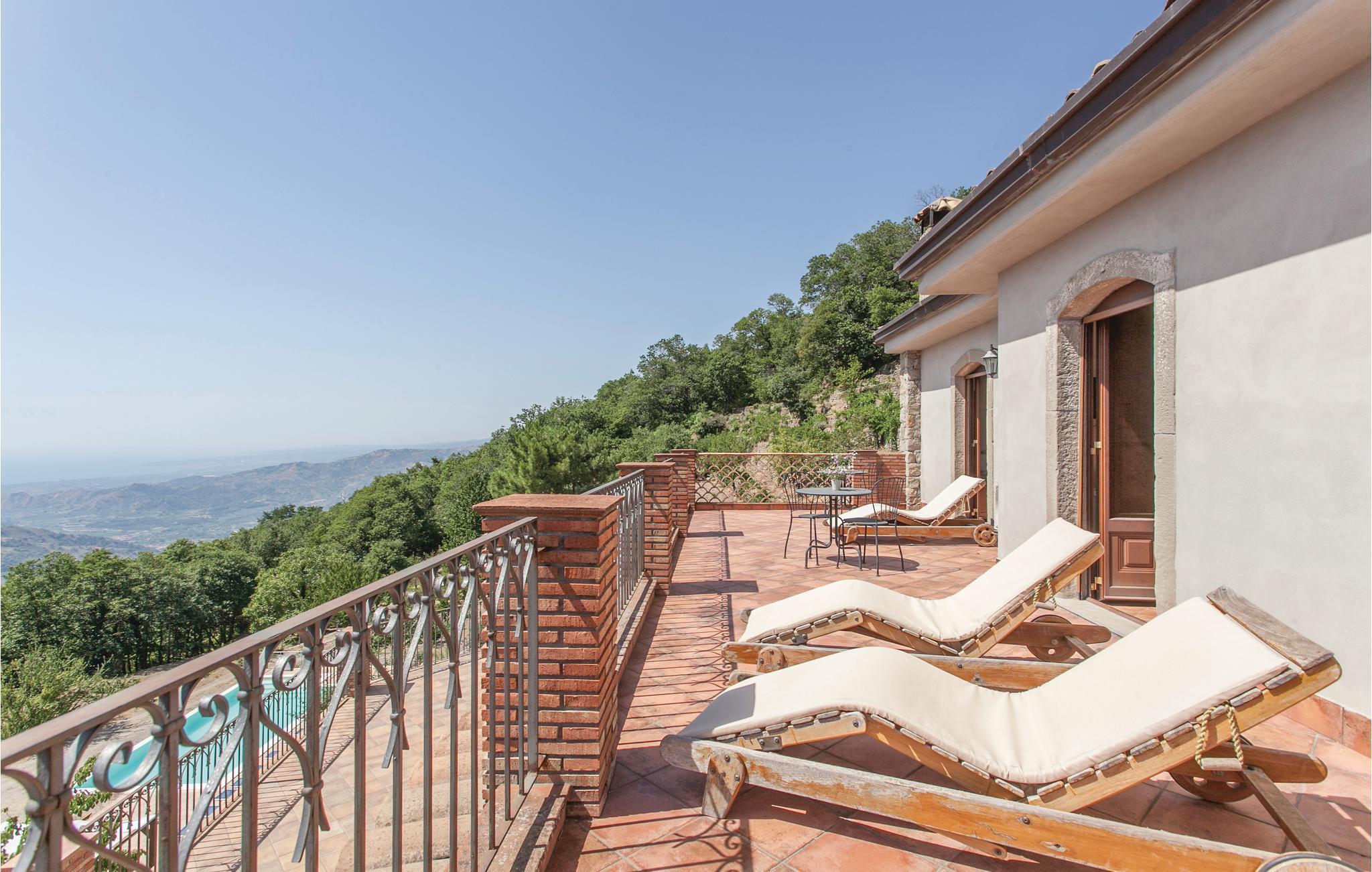 Dieses geräumige Ferienhaus mit Dependance, nahe dem Ort Graniti, südwestlich von Messina gelegen, eignet sich für einen angenehmen, erholsamen Urlaub mit Ihrer Familie oder Ihren Freunden! Entspannen Sie sich am schönen Pool und genießen Sie den Panoramablick auf das Tal, das zu den berühmten Schluchten des Alcantara Flusses führt. Die großen Innen- und Außenräume dieses Feriendomizils, darunter ein überdachter Außenspeisesaal mit Küche und Holzofen, sorgen für ein angenehmes Ambiente, wo Sie die Köstlichkeiten und hervorragenden Weine dieses östlichen Teils der Region Sizilien genießen können. Zu den Stränden des Badeortes Giardini Naxos und des malerischen Taormina, reich an Sehenswürdigkeiten (z. B das antike Theater mit Blick auf den Vulkan Ätna), sind es wenige Kilometer. Beim ebenefalls wenige Kilometer entfernten Castiglione di Sicilia finden Sie einen Golfplatz.
