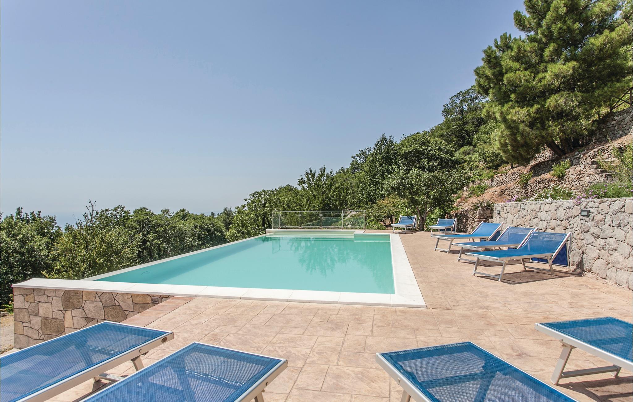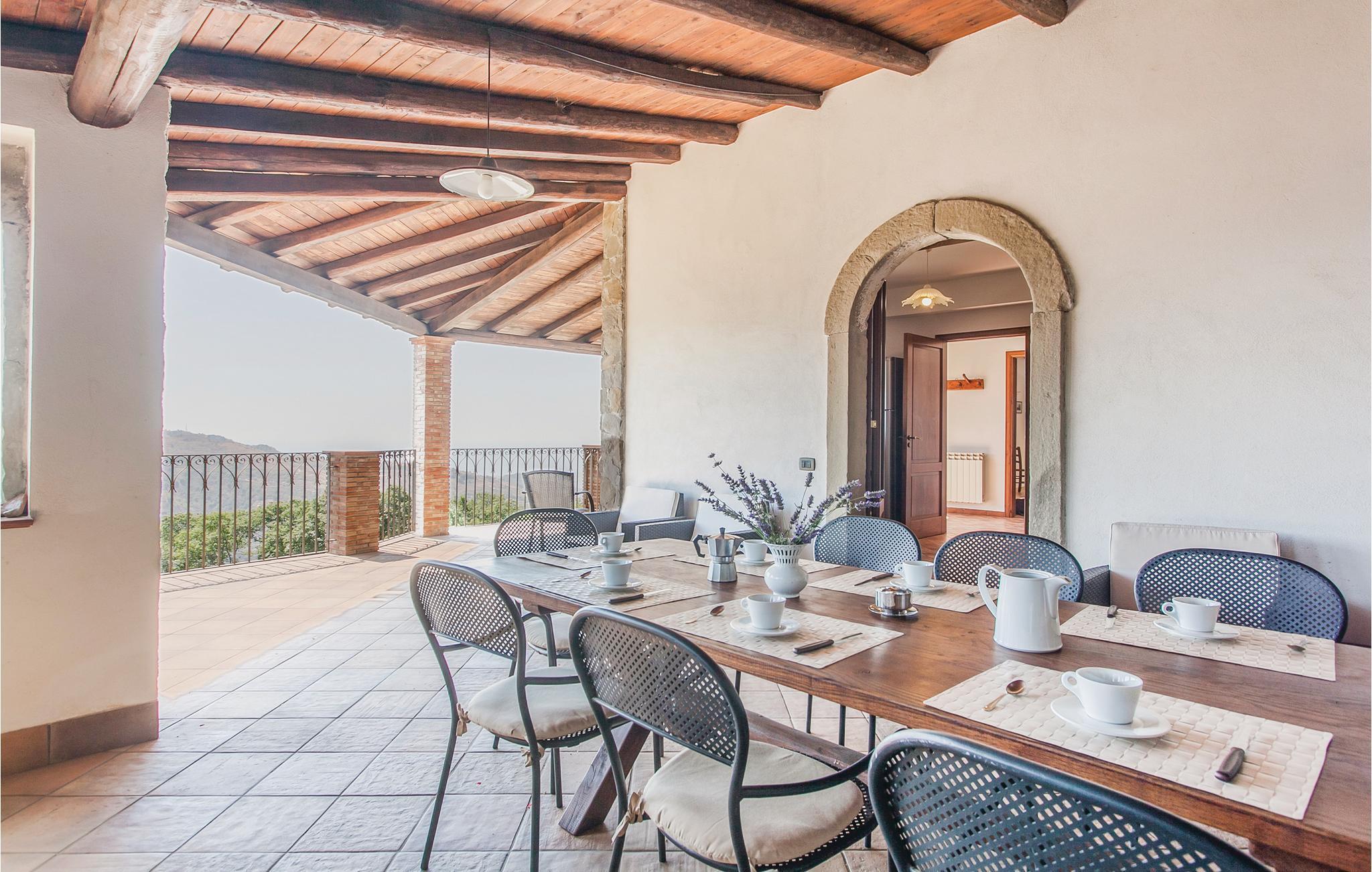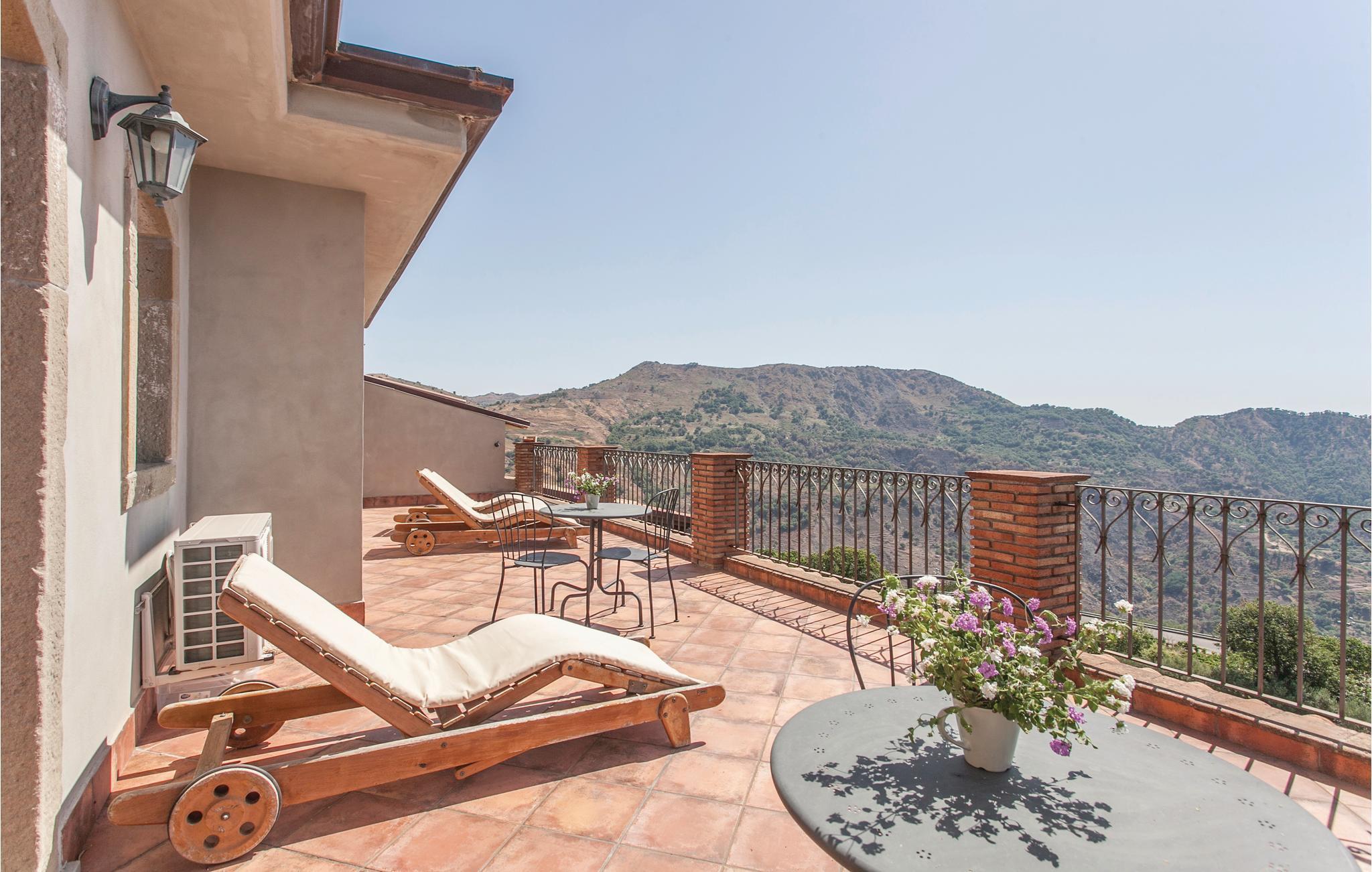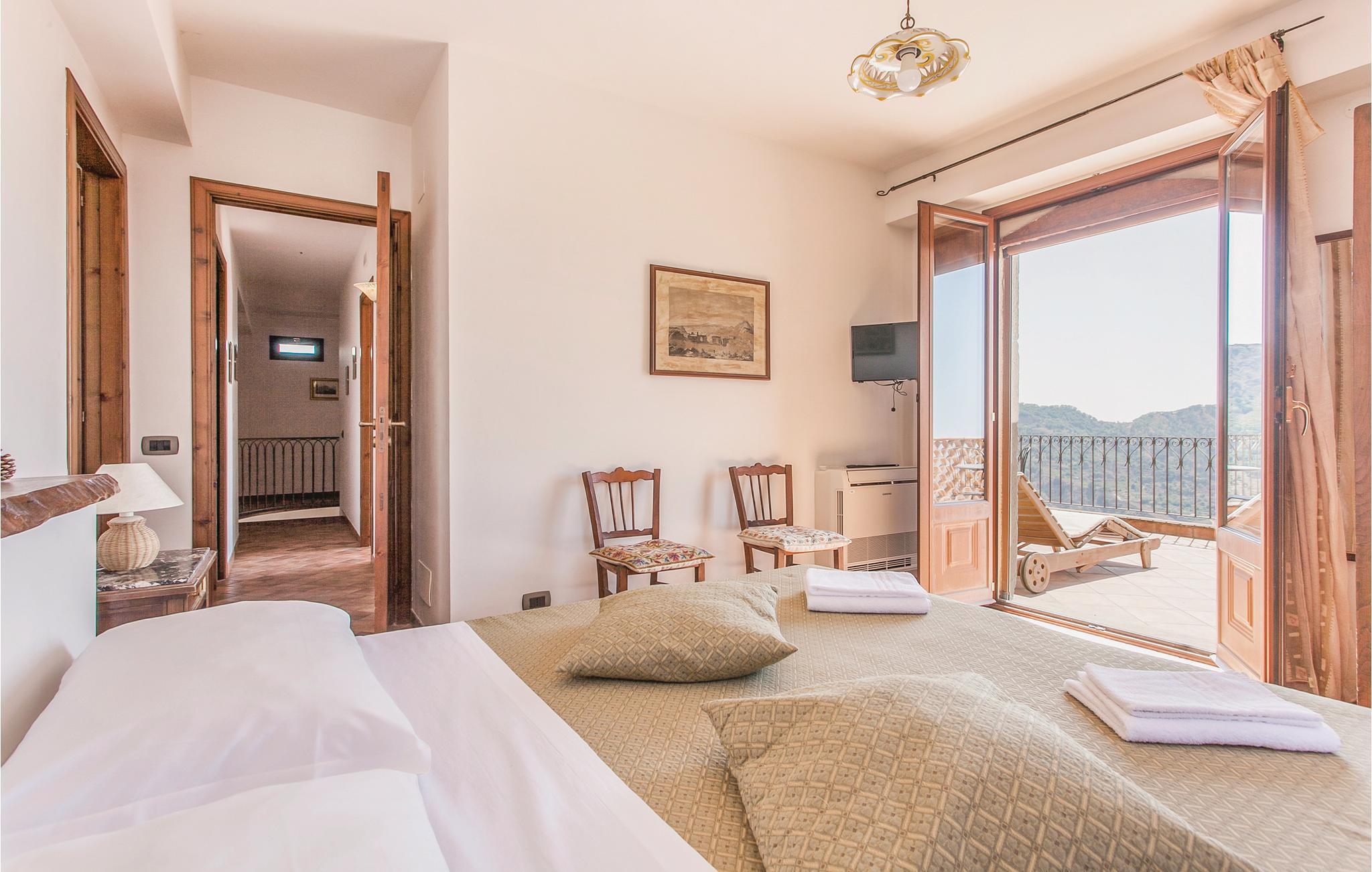 Dieses geräumige Ferienhaus mit Dependance, nahe dem Ort Graniti, südwestlich von Messina gelegen, eignet sich für einen angenehmen, erholsamen Urlaub mit Ihrer Familie oder Ihren Freunden! Entspannen Sie sich am schönen Pool und genießen Sie den Panoramablick auf das Tal, das zu den berühmten Schluchten des Alcantara Flusses führt. Die großen Innen- und Außenräume dieses Feriendomizils, darunter ein überdachter Außenspeisesaal mit Küche und Holzofen, sorgen für ein angenehmes Ambiente, wo Sie die Köstlichkeiten und hervorragenden Weine dieses östlichen Teils der Region Sizilien genießen können. Zu den Stränden des Badeortes Giardini Naxos und des malerischen Taormina, reich an Sehenswürdigkeiten (z. B das antike Theater mit Blick auf den Vulkan Ätna), sind es wenige Kilometer. Beim ebenefalls wenige Kilometer entfernten Castiglione di Sicilia finden Sie einen Golfplatz.
