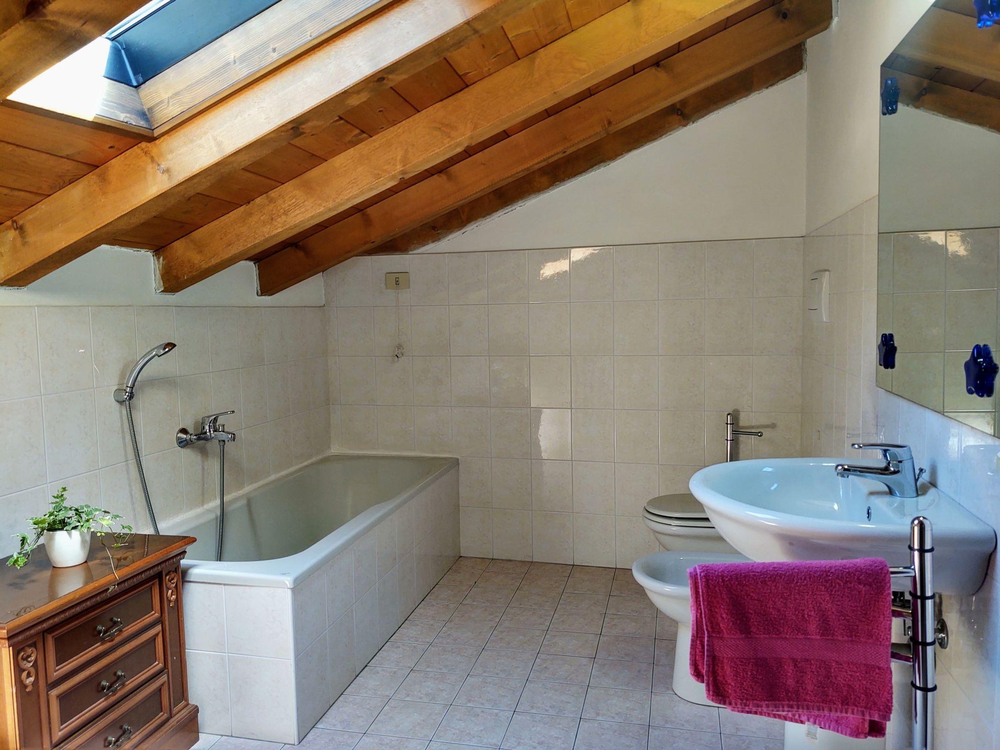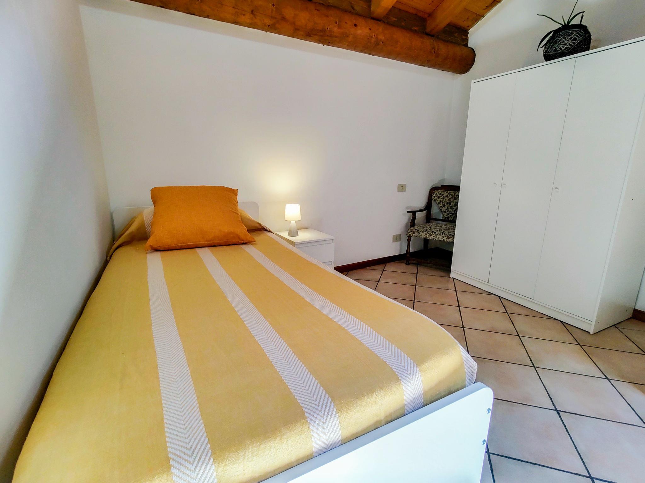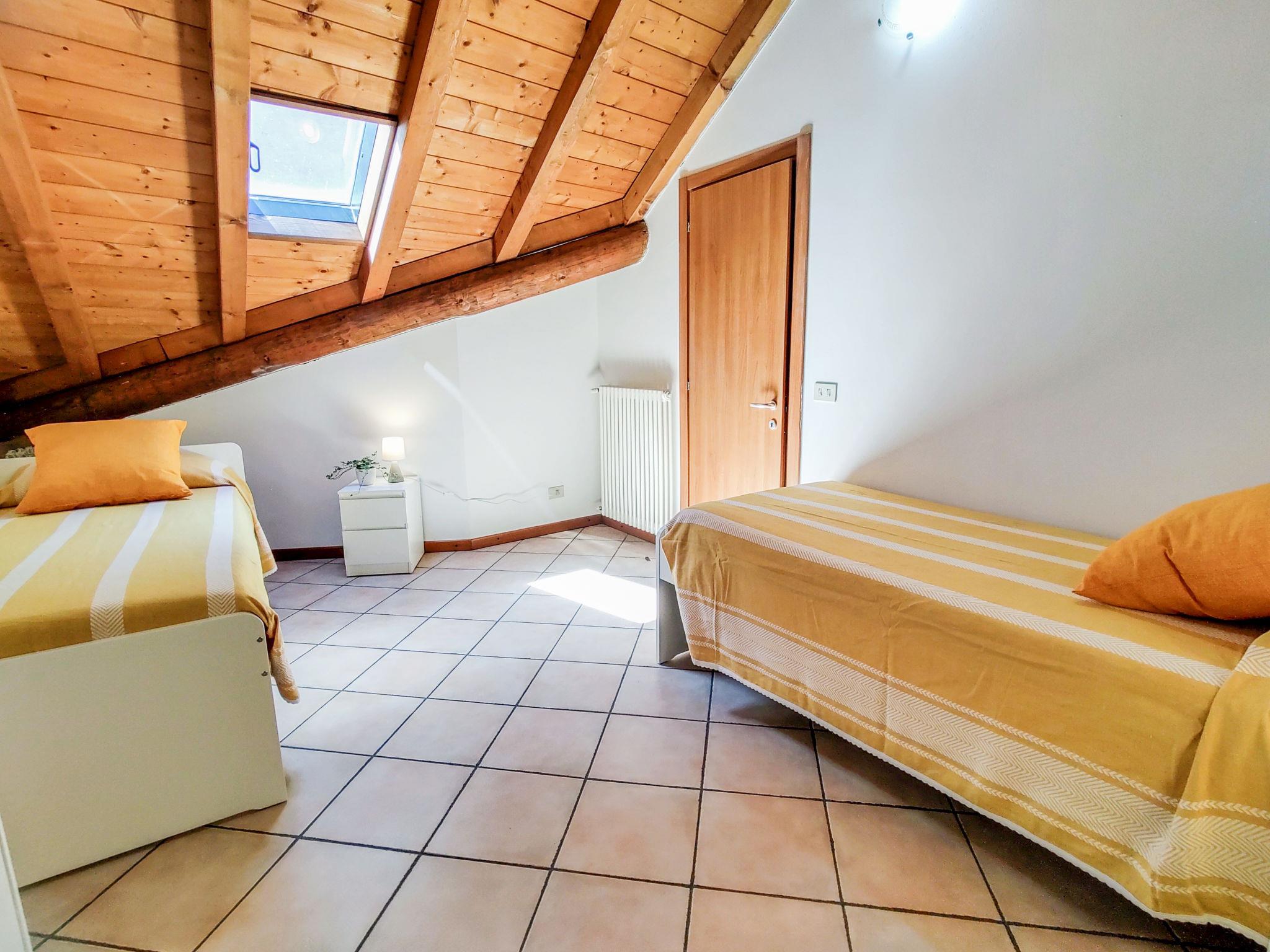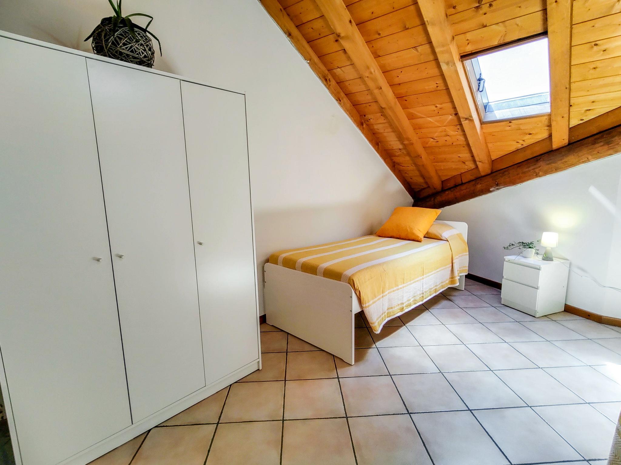 "Relax", 5-Zimmer-Wohnung 120 m2 auf 2 Stockwerken im 2. Stock. Zweckmässig eingerichtet: Eingang. Offenes Esszimmer. 1 Doppelzimmer. 1 Zimmer mit 1 x 2 Etagenbetten. Offene Küche (4 Kochplatten, Backofen). Dusche/Bidet/WC. Obergeschoss: abgeschrägtes Wohnzimmer mit Dachfenster mit 2 Diwanbetten und TV. 1 Zimmer mit 2 Betten. Bad/Bidet/WC. G-Heizung (extra). Heizung nur verfügbar von 15.10. bis 15.04. Kleiner Balkon. Eingeschränkte Sicht auf den See. Zur Verfügung: Waschmaschine, Kinderhochstuhl, Babybett bis 2 Jahre, Haartrockner. Internet (Wireless LAN, gratis). Das Zimmer mit dem Etagenbett hat ein hohes Fenster Richtung Badezimmer. Das Doppelzimmer hat ein hohes Fenster Richtung Küche. IT013249C2SXKKTXMH