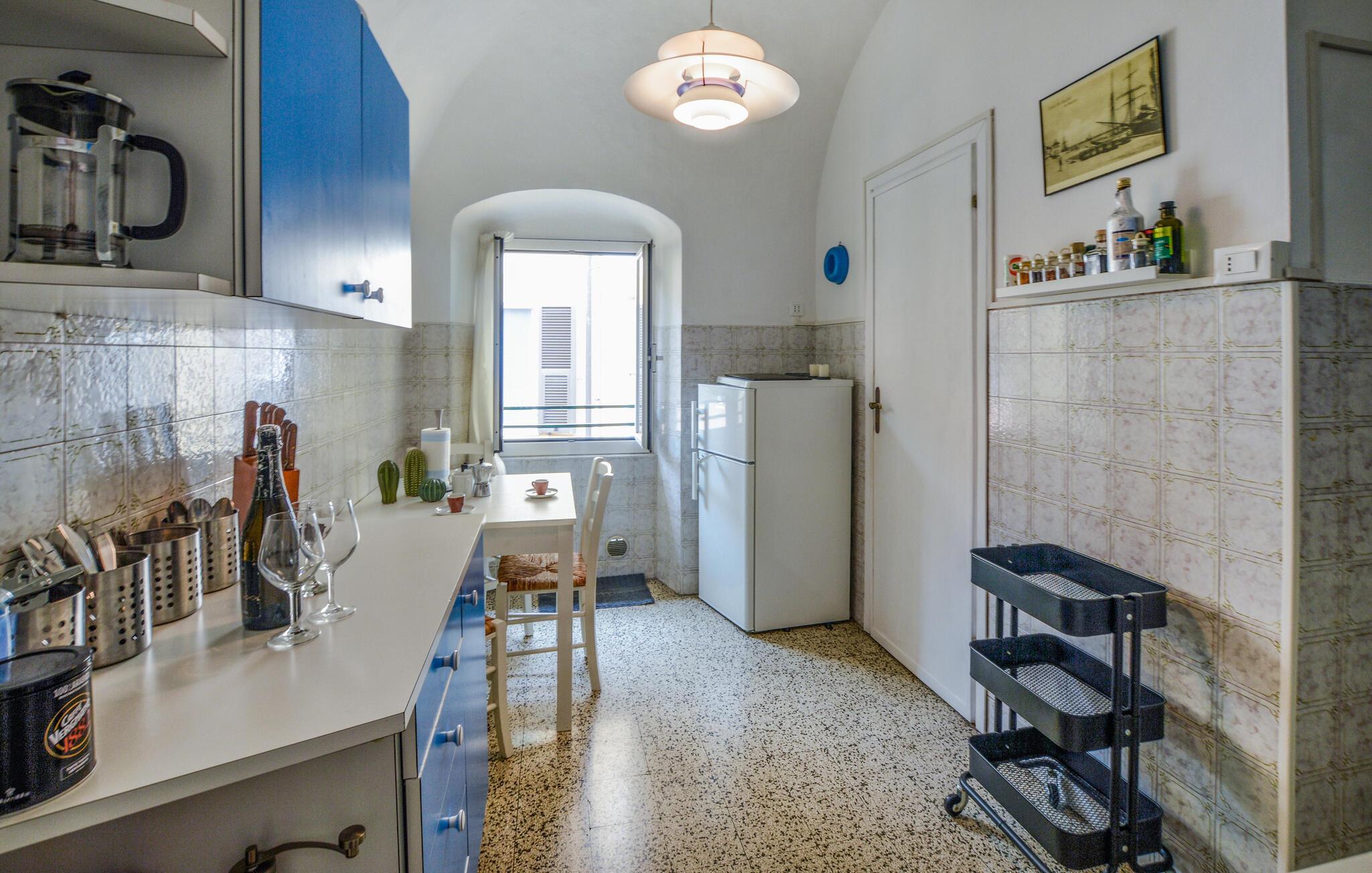 Ihre Ferienwohnung in Imperia, ideal gelegen zwischen Nizza und Genua, bietet den idealen Ort, um die wunderschöne Mittelmeerküste zu erkunden und sich zu entspannen. Beginnen Sie Ihren Tag mit einem gemütlichen Frühstück in der Essküche und spüren Sie die Vorfreude auf den bevorstehenden Urlaubstag. Der einladende Wohnbereich mit zahlreichen Sitzgelegenheiten ist der ideale Ort, um sich entspannen oder den Abend in geselliger Runde ausklingen zu lassen.