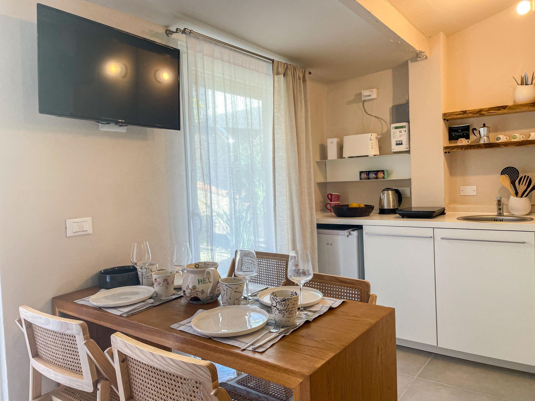 "La casa di Manu", 1-Zimmer-Wohnung 30 m2, im Erdgeschoss. Hell, schön und stilvoll eingerichtet: mit 1 Bett und 1 Doppelbett (1 x 160 cm), Sat-TV. Ausgang zum Gartensitzplatz. Kochnische (1 Induktionskochplatten, Toaster, Wasserkocher, elektrische Kaffeemaschine) mit Esstisch. Dusche/WC. Klimaanlage, Warmluftheizung. Natursteinboden. Terrassenmöbel, Gartengrill. Zur Verfügung: Waschmaschine, Haartrockner. Internet (Wireless LAN). IT008031C2TDBD9TV4