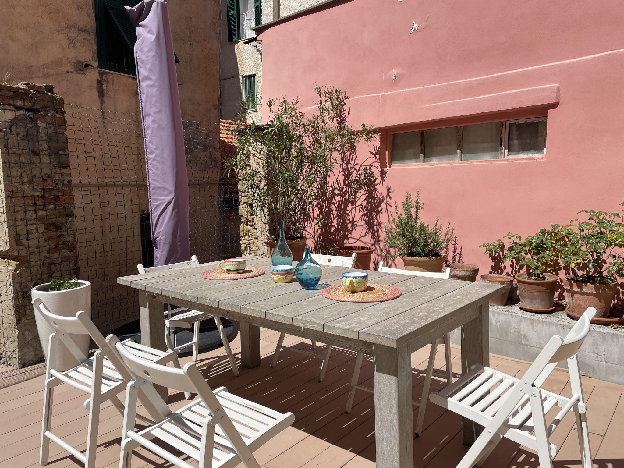 Grosses Doppelhaus "Casa Nel Blu", auf 2 Stockwerken. Im Ortszentrum von Imperia Porto Maurizio, 10 km vom Zentrum von Diano Marina, exzellente Lage: Absolut zentral und dennoch ruhig, im Herzen der Stadt, 500 m vom Meer. Im Hause: Waschmaschine. Öffentliche Parkplätze 100 m auf der Strasse. Einkaufsgeschäft, Restaurant 100 m, Bar 50 m, Bäckerei, Café 100 m, Fußgängerzone 200 m, Bushaltestelle 100 m, Bahnstation "Imperia Oneglia" 5 km, Sandstrand "Borgo Marina" 500 m. Jacht-Hafen, Radweg 500 m. Nahe gelegene Sehenswürdigkeiten: Pista ciclabile lungo mare 500 m, Porto Maurizio Altstadt Parasio 10 m, Museo dell´ Olivo Carlo Carli 5 km, Triora Hexendorf 35 km, Monte Carlo Monaco 55 km, Nizza Airport 90 km.