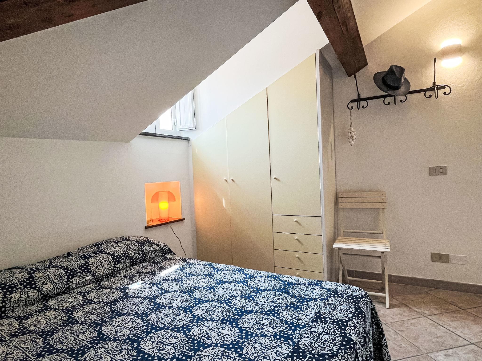 "Il Tetragonuro", 2-Zimmer-Wohnung 30 m2 auf 2 Stockwerken im 1. Stock. Hell, teilweise abgeschrägt, vollständig renoviert, schön und gemütlich eingerichtet: Wohnküche (4 Flammen, Toaster, Wasserkocher, Tiefkühler, elektrische Kaffeemaschine) mit Esstisch. Obergeschoss: (Wendeltreppe) 1 abgeschrägtes Zimmer mit Dachfenster mit 1 Doppelbett (1 x 160 cm, Länge 200 cm). Sitzbad/Bidet/WC. Klimaanlage, Warmluftheizung. Heizung nur verfügbar von 01.11. bis 01.04. Seitliche Sicht auf die Ortschaft. Zur Verfügung: Waschmaschine. Bitte beachten: 1 kleines Haustier/Hund erlaubt. Kein Fahrstuhl. IT008031C2JLAYXJNF