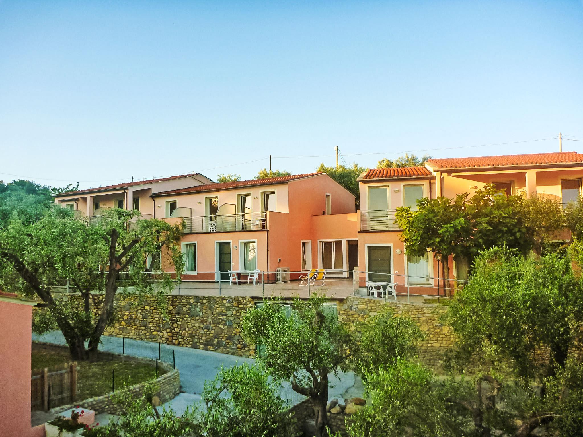 Grosse, kinderfreundliche Feriensiedlung "Borgoverde", umgeben von Bäumen. 32 Wohnungen im Ferienhaus. Im Ortsteil Porto Maurizio, 1 km vom Zentrum, 3.5 km vom Zentrum von Imperia Oneglia, ruhige, erhöhte Lage, 1.2 km vom Meer, 1.2 km vom Strand. Zur Mitbenutzung: Schwimmbad (14 x 7 m, saisonale Verfügbarkeit: 27.Mai. - 15.Sep. Öffnungszeiten Schwimmbad: 09:00-19:00). Kinderbecken, Aussendusche. In der Anlage: Empfang, Bar, Internetzugang, Solarium. Wohnungsreinigung möglich (extra). Parkplatz auf dem Grundstück. Lebensmittelgeschäft, Restaurant 600 m, Bushaltestelle 850 m, Bahnstation "Imperia" 2.7 km, Sandstrand 1.2 km, Steinstrand "Prino" 2 km. Jacht-Hafen 1.1 km. Nahe gelegene Sehenswürdigkeiten: San Lorenzo al Mare 7 km, Sanremo 30 km. Bitte beachten: Fahrzeug empfohlen. Das Foto ist nur ein Hausbeispiel.