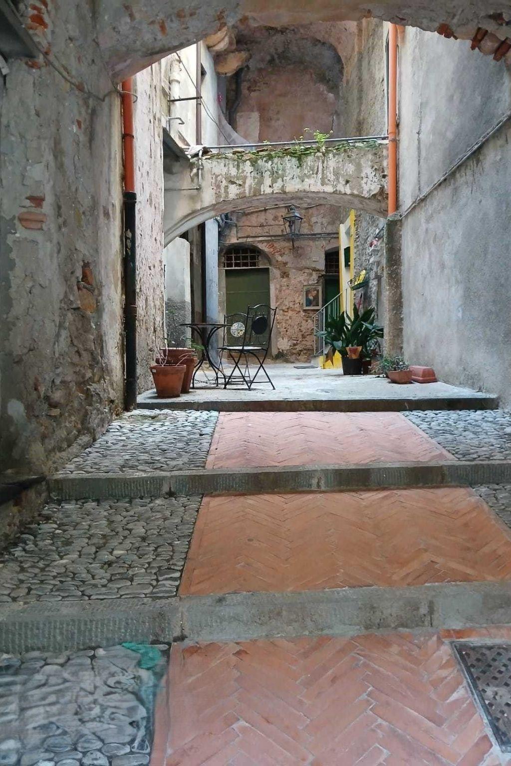 Die Wohnung verfügt über drei geräumige Schlafzimmer, von denen jedes für eine erholsame Nachtruhe konzipiert wurde. Das Hauptschlafzimmer verfügt über ein Kingsize-Bett, eine mit Fresken bemalte Decke und einen spektakulären Meerblick, während das zweite Schlafzimmer ein Queen-Size-Bett und einen Blick auf den charakteristischen Carruggio bietet. Das helle und luftige dritte Schlafzimmer verfügt über zwei Etagenbetten, die für Erwachsene und Kinder gleichermaßen geeignet sind. Diese Kombination bietet reichlich Platz und Komfort für alle Gäste.