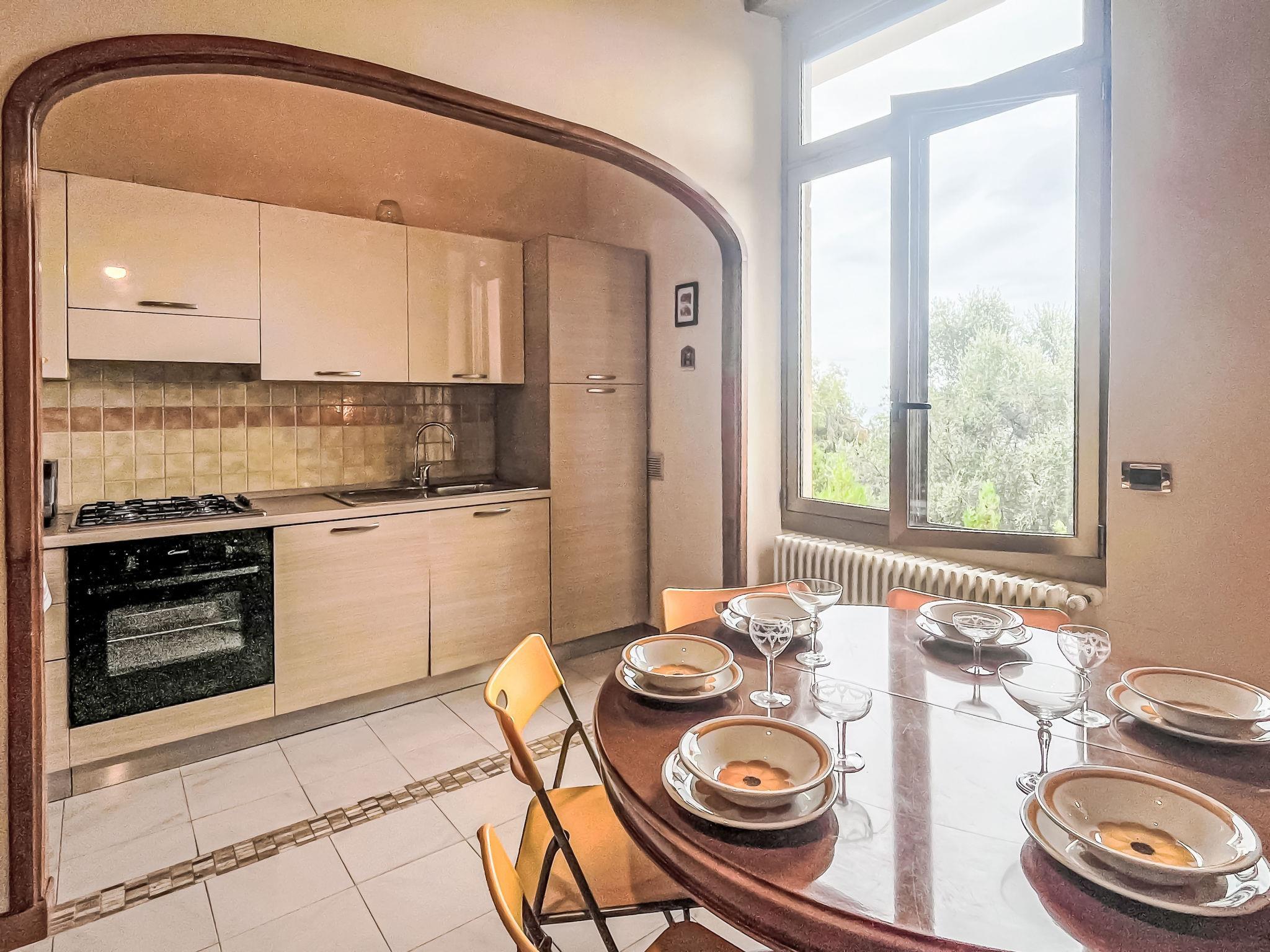 Grosses, gemütliches Appartementhaus auf 3 Stockwerken, umgeben von Bäumen. Im Ortszentrum von Imperia, sonnige, erhöhte Lage in einem Wohnquartier, im Villenviertel, im Herzen der Stadt, 600 m vom Meer. Öffentliche Parkplätze 5 m auf der Strasse. Lebensmittelgeschäft 800 m, Supermarkt 1 km, Einkaufszentrum 4 km, Restaurant 1 km, Bar, Bäckerei 800 m, Café 1 km, Fußgängerzone 1 km, Fahrradverleih 1 km, Zentrum zu Fuss in 15 Minuten erreichbar, Bushaltestelle 200 m, Bahnstation "Imperia Oneglia" 4 km. Radweg 500 m. Nahe gelegene Sehenswürdigkeiten: Pista ciclabile lungo mare 500 m, Porto Maurizio Altstadt Parasio. Wandergebiete: Monte Faudo (1149 m) Mountainbike Trails.