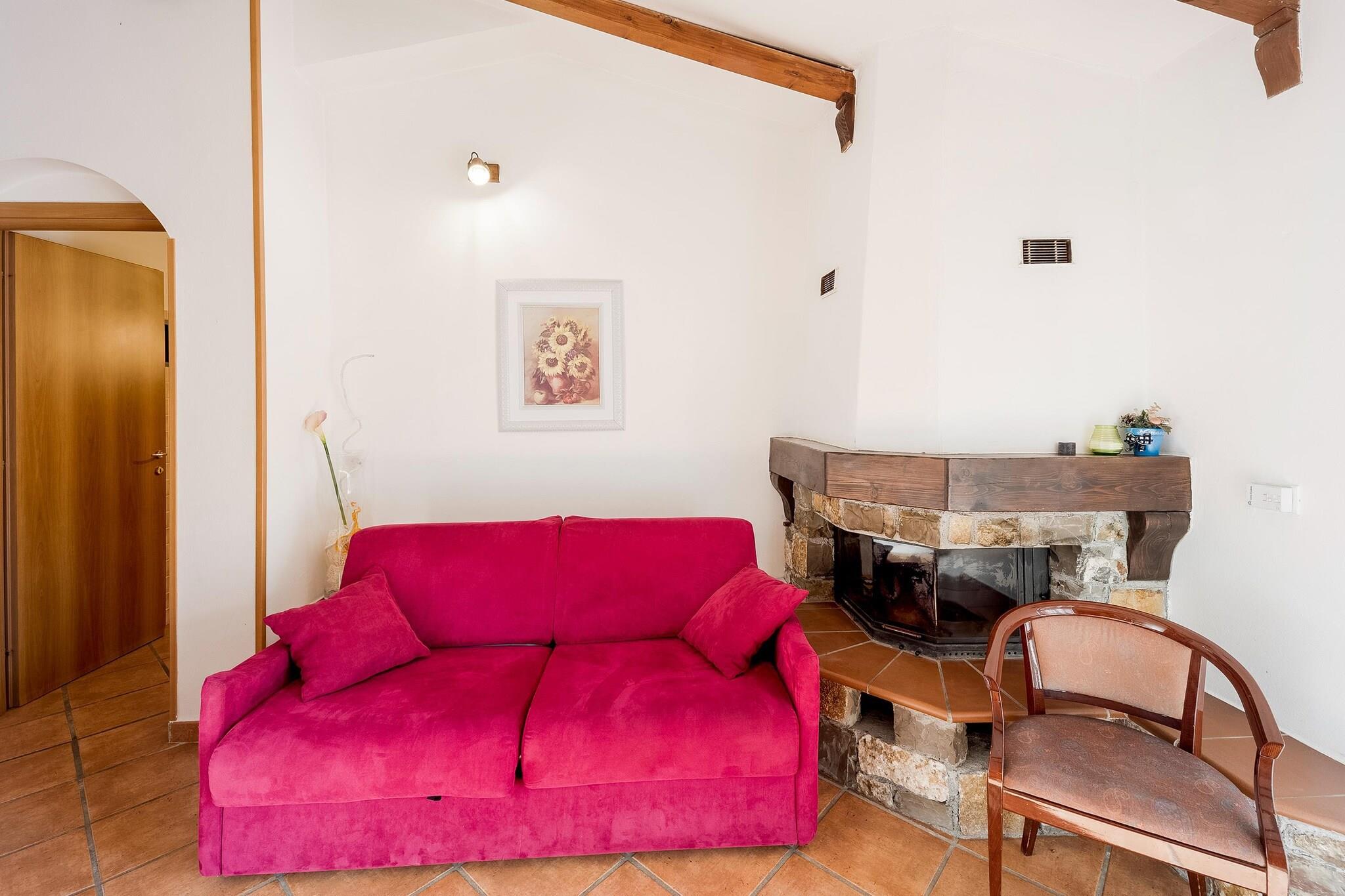 Offene Küche(Kochherd(4 Kochplatten, Gas), Mikrowelle, Kühlschrank), Wohn/Esszimmer(Doppelschlafcouch, TV, Esstisch, Sitzecke), Schlafzimmer(Doppelbett oder 2 Einzelbetten), Badezimmer(Badewanne oder Dusche, Waschbecken, Toilette), Balkon oder Terrasse, Heizung, Klimaanlage, Garten(Gemeinschaftliche Nutzung mit anderen Gästen), Liegen, Parkplatz, Pool(Gemeinschaftliche Nutzung mit anderen Gästen, 9 x 4 m., geöffnet von Apr bis einschließlich Okt), Pool(Gemeinschaftliche Nutzung mit anderen Gästen, 7 x 3 m., geöffnet von Apr bis einschließlich Okt), Sonnenschirm, Babybett (kostenlos)