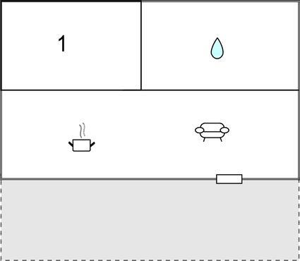 Wohnraum/Küche - 1 Schlafmöglichkeit. (Schlafsofa,Matratze,Sonstiges).