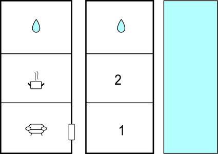 Badezimmer (nr. 1) - WC. Warmes und kaltes Wasser. Dusche