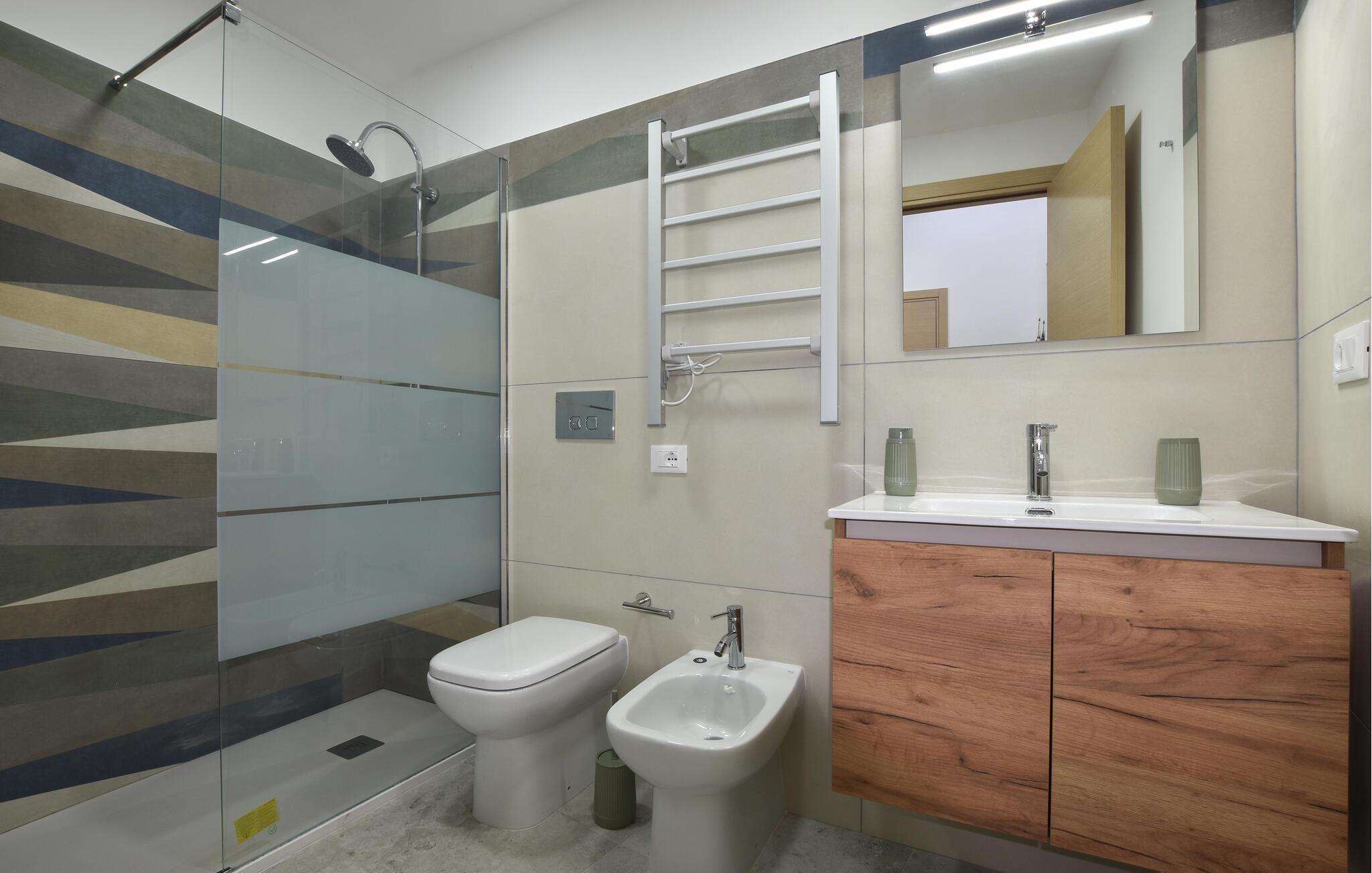 Badezimmer 4m2 (nr. 1) - WC. Warmes und kaltes Wasser. Dusche