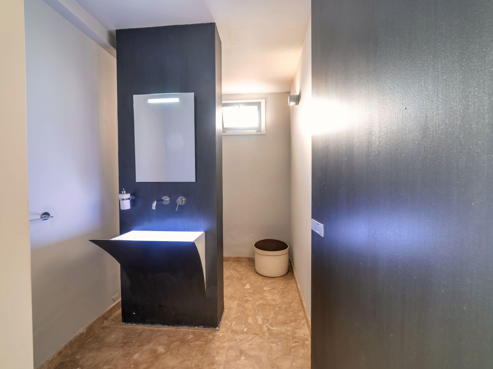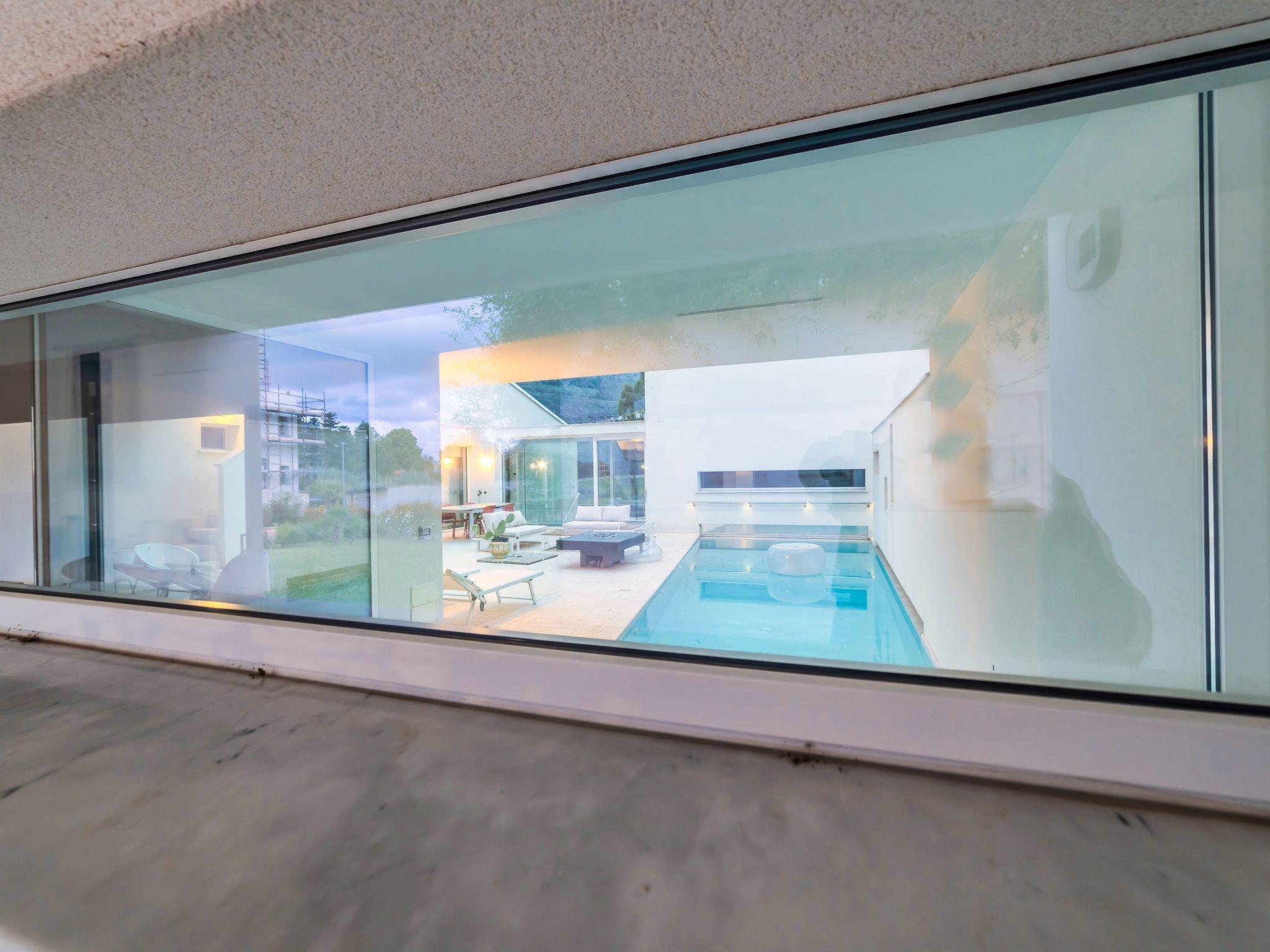 Dieses sehr elegante Anwesen verfügt über 4 geräumige Doppelschlafzimmer, von denen eines ein eigenes Bad hat. Zwei Schlafzimmer haben ein Wohnzimmer und ein Hochbett. Der Außenhof beherbergt einen 10x3 m großen Swimmingpool und öffnet sich auf allen Seiten des Hauses mit spektakulären Glasfenstern. Im Garten gibt es einen weiteren 20x4 m großen Pool mit Liegestühlen, Sonnenliegen, Terrasse und Rasen.