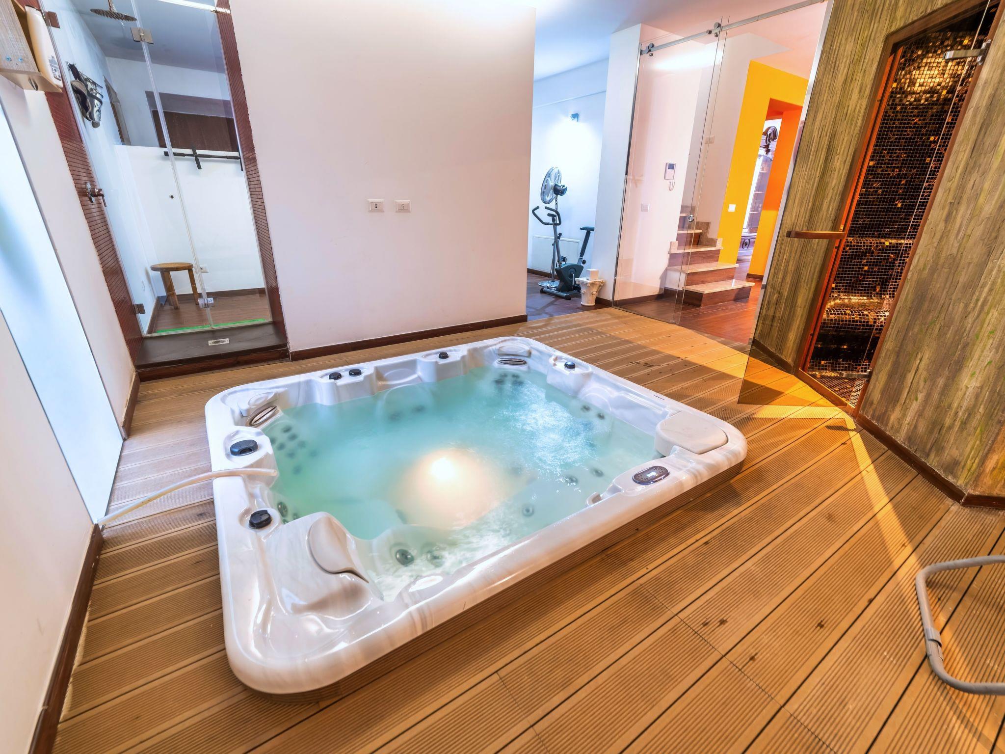 Luxuriöse Villa in einem Garten von 8000 qm. Das elegante Anwesen verfügt über 3 geräumige Doppelschlafzimmer, von denen eines ein eigenes Bad hat. Ein Schlafzimmer hat ein Wohnzimmer und ein Bett auf dem Dachboden. Der Innenhof im Freien beherbergt einen Swimmingpool (10x3) und öffnet sich auf allen Seiten des Hauses mit spektakulären Glasfenstern. Hochwertige Ausstattung und Verarbeitung. Das Haus verfügt über einen SPA-Bereich mit Jacuzzi, Hammam und Fitnessbereich. Der schöne Außenbereich verfügt über einen weiteren spektakulären Swimmingpool (20x4!) und bietet mehrere Entspannungsecken und einen Grillplatz.