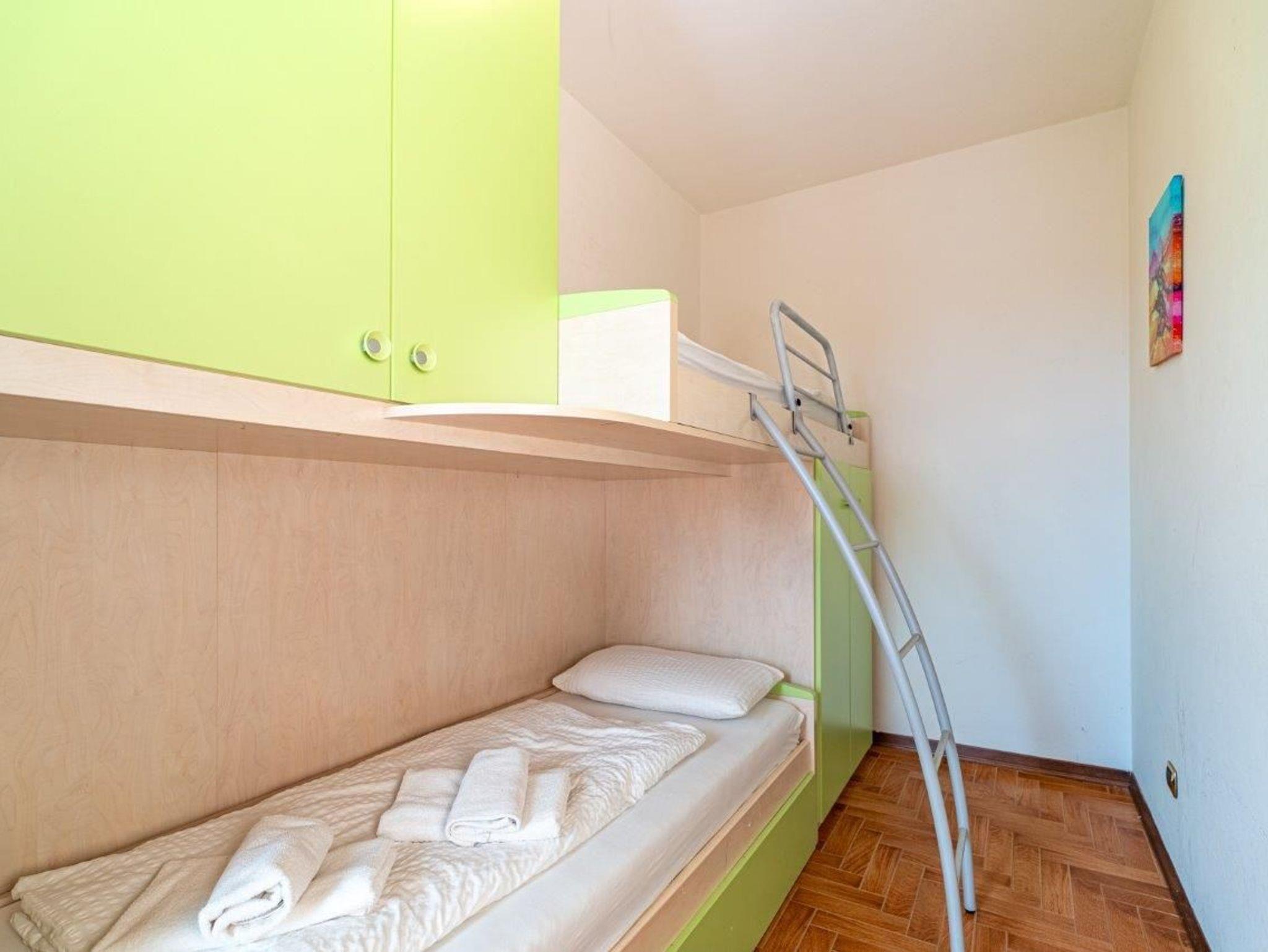 • Ein Schlafzimmer mit Etagenbett und weiterem Bett zum ausziehen