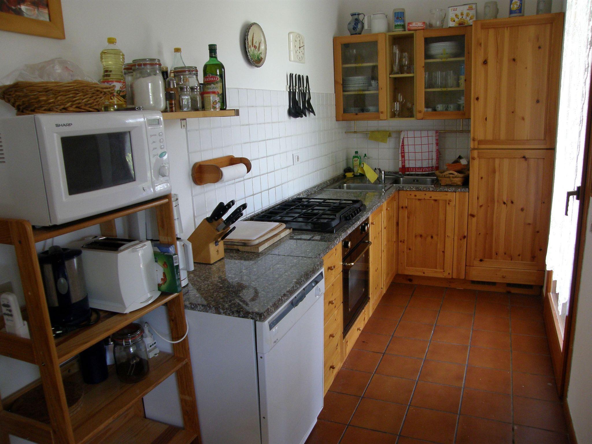 • Eine gut ausgestattete Küche mit Gasherd, Backofen, Mikrowelle, Spülmaschine, Kaffeemaschine, Toaster, Wasserkocher und großem Kühlschrank mit Gefrierfach