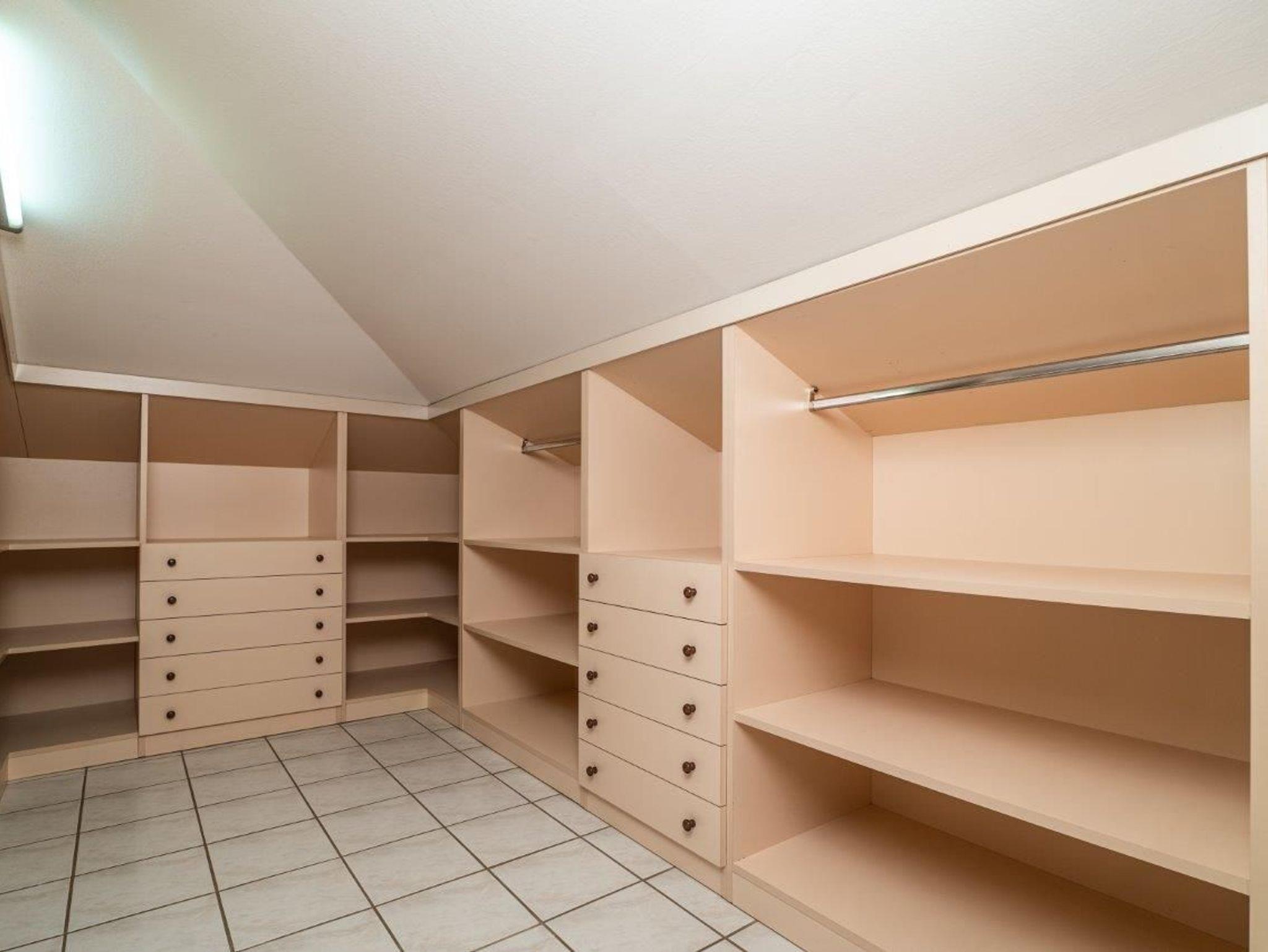 • Ein Schlafzimmer mit Doppelbett, begehbarem Kleiderschrank und Klimaanlage