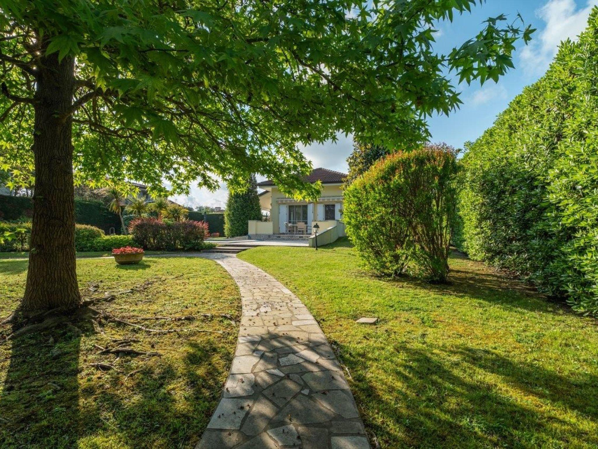 Sehr großer Garten mit Gartenmöbeln, Sonnenliegen, Außengrill und Außendusche