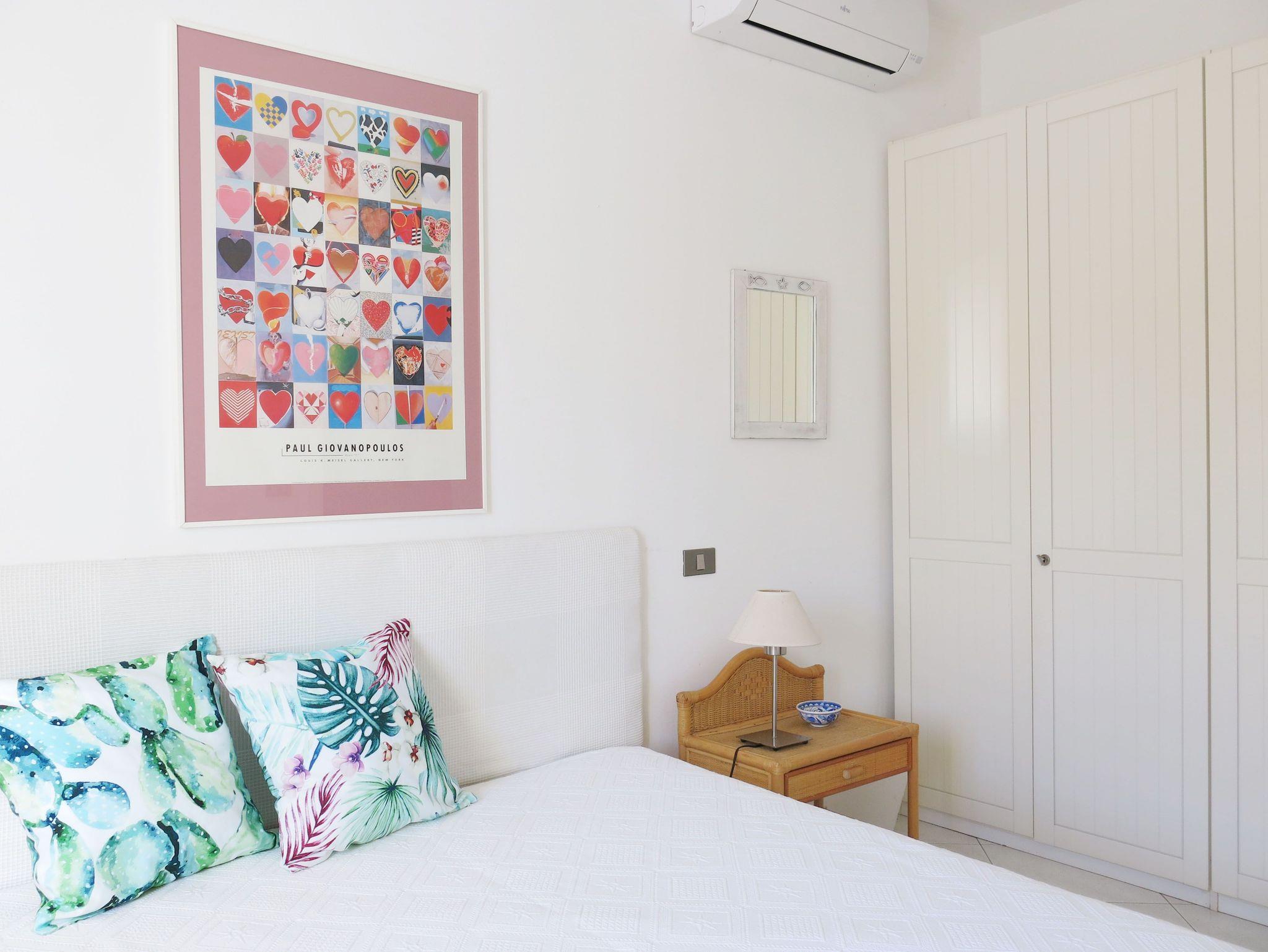 • Ein Schlafzimmer mit einem Doppelbett und Klimaanlage