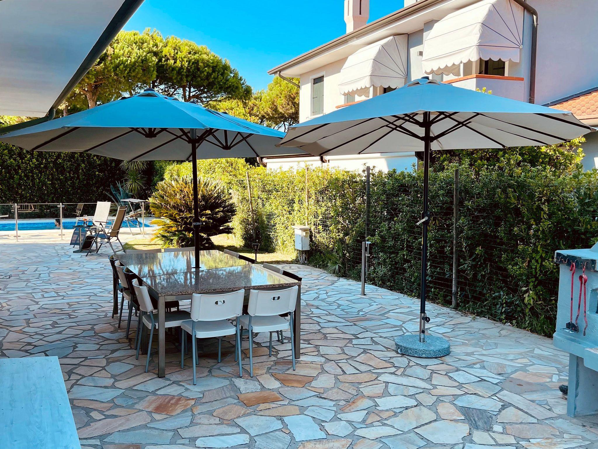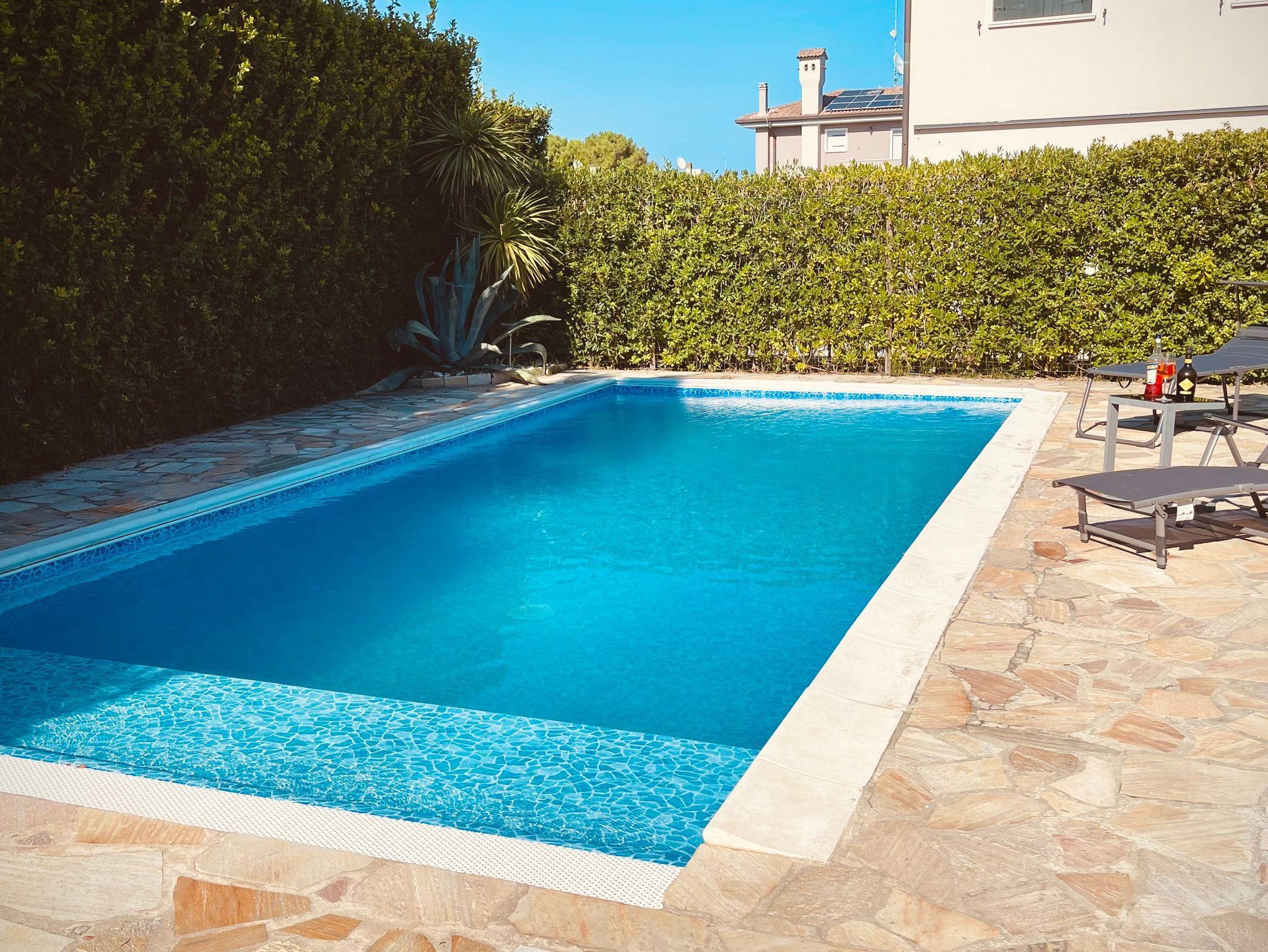 Via del Salice, Einzelhausvilla mit Pool für 10 bis 12 Personen, im ersten Inseldrittel in einer ruhigen Seitenstraße in Strandnähe , ca. 1,4 km zum Centro Sportivo, ca. 600 m zu den Tennisplätzen, ca. 500 m zum Reitsportzentrum, ca. 1,9 km zum Supermarkt