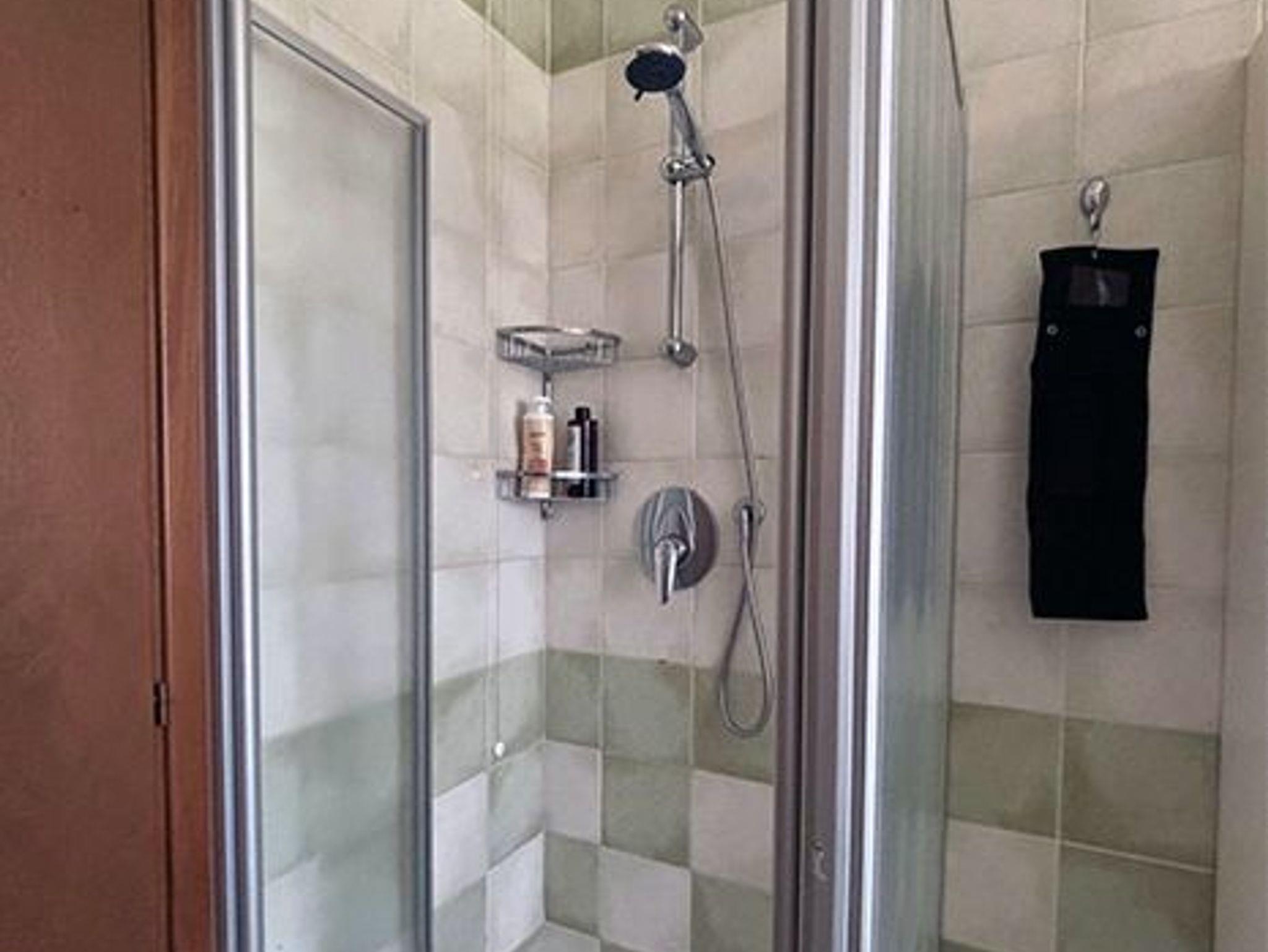• Ein zweites Badezimmer mit Dusche, Waschbecken, Bidet und WC.