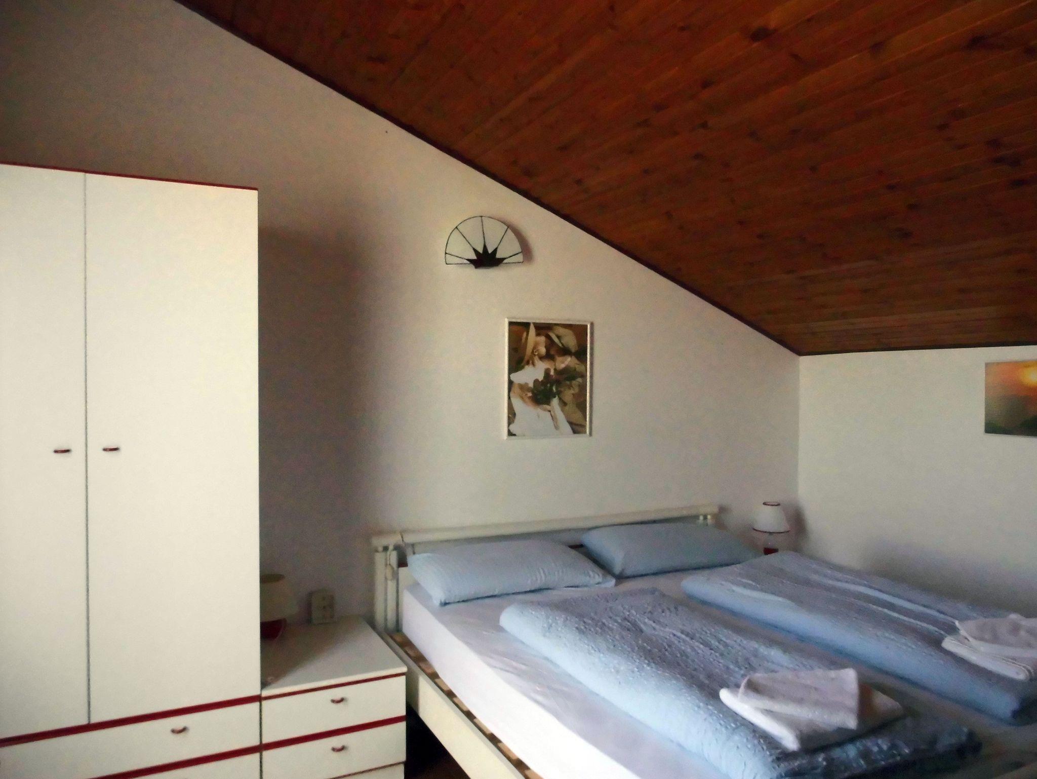 • Ein Schlafzimmer mit Doppelbett, Klimaanlage, Balkon und eigenem Bad mit WC und Bidet