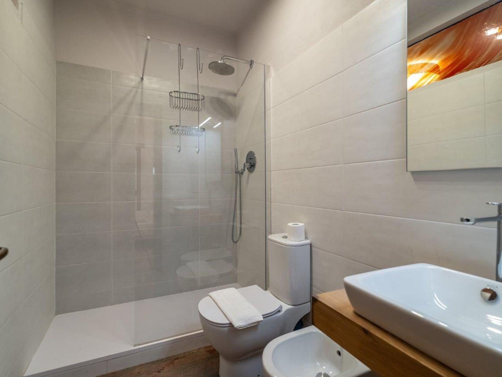 • Ein Schlafzimmer mit Doppelbett und Badezimmer mit Dusche, Bidet und Wc
