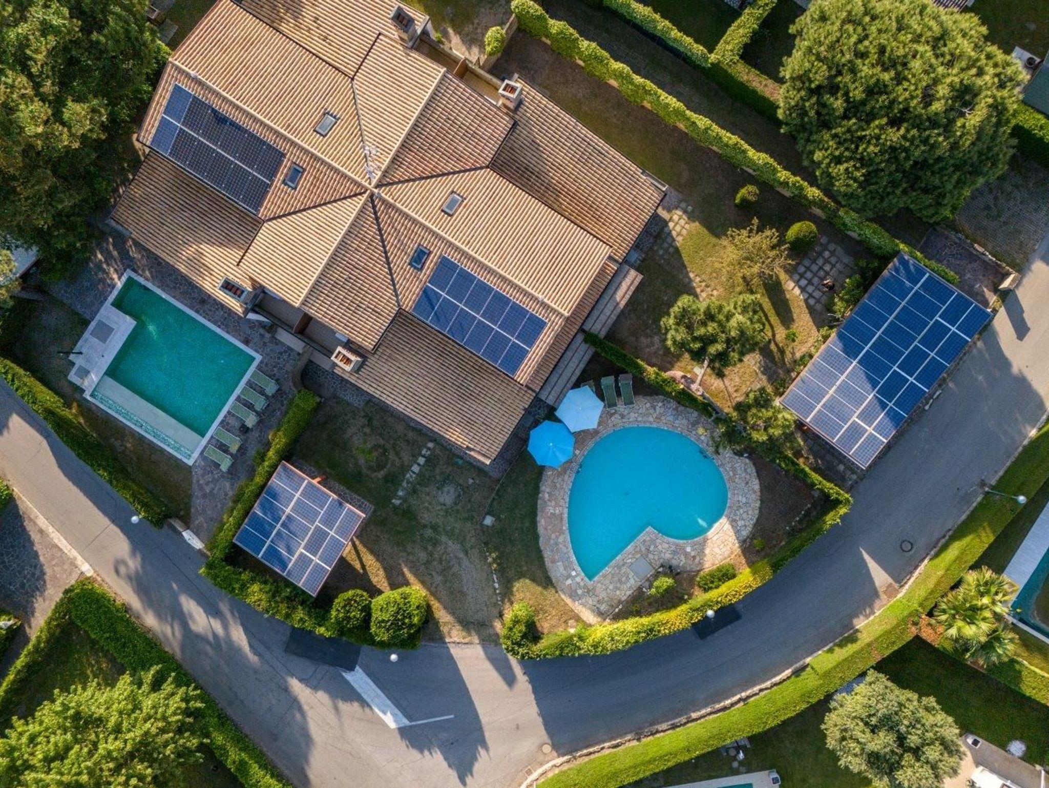 Schöner Garten mit Gartenmöbel, Sonnenliegen, Außengrill, Außendusche und Pool