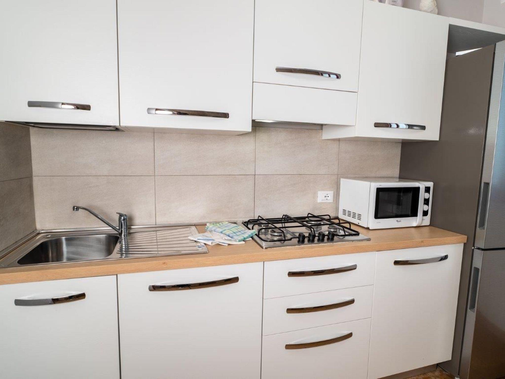 • Gut ausgestattete Küche mit Kaffeemaschine, Kühlschrank, Gefriechfach, Mikrowelle und Spülmaschine