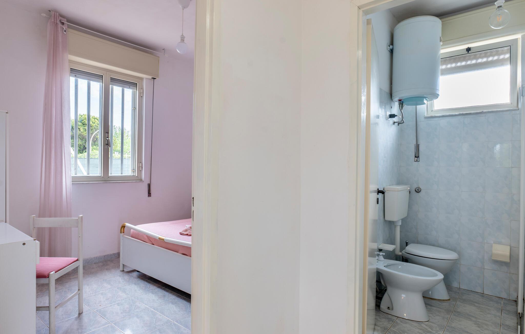 Badezimmer 4m2 (nr. 1) - WC. Warmes und kaltes Wasser. Dusche