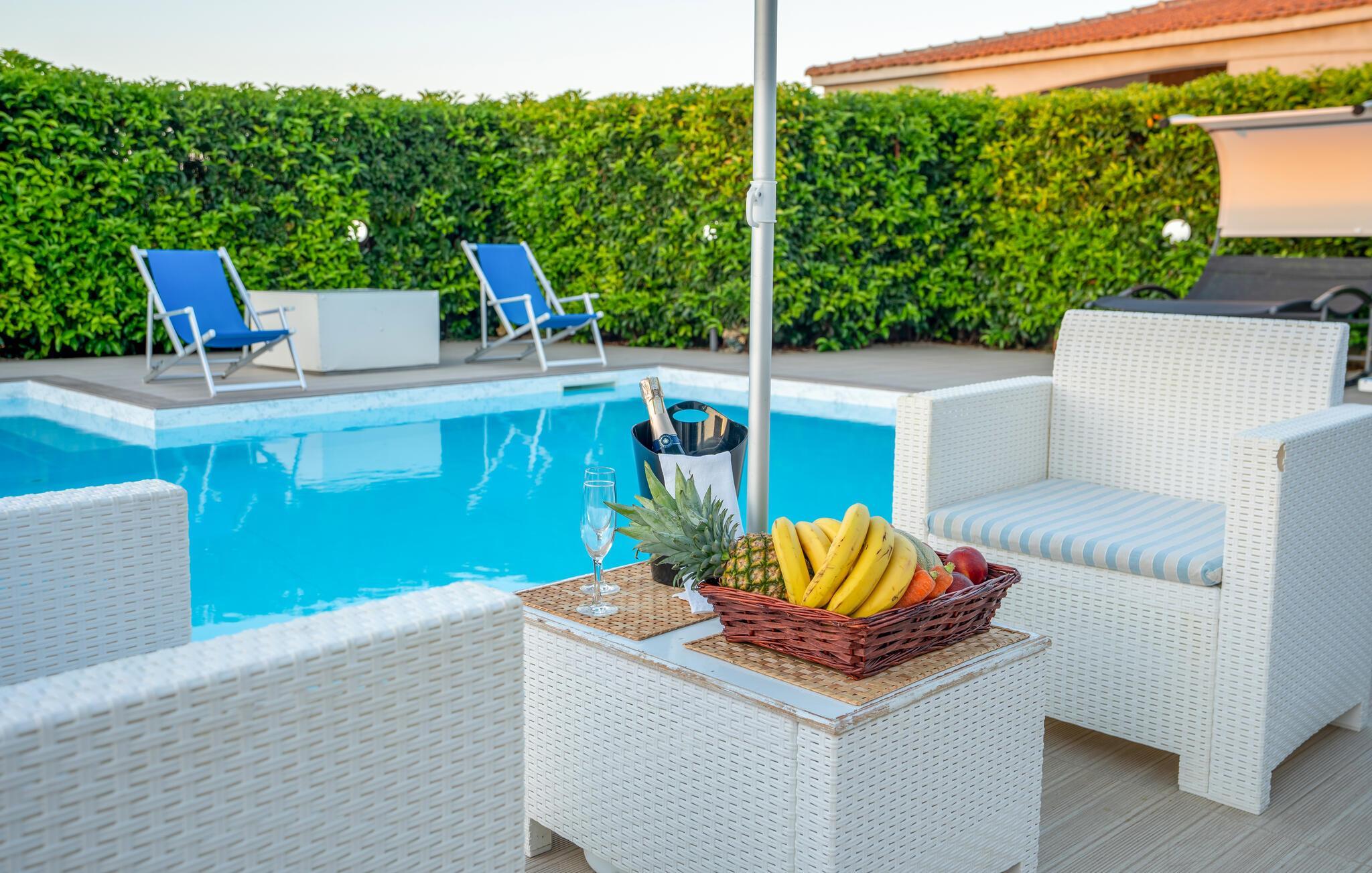 Der große Pool ist das Herz des Außenbereichs. Verbringen Sie vergnügte Stunden im Wasser beim Schwimmen oder Ballspielen und ruhen Sie sich anschließend auf einer der Sonnenliegen aus. Der Sitzbereich lädt zu einem Gläschen Sekt beim Plaudern am Nachmittag ein. Abends entzünden Sie den Grill und lassen frischen Fisch oder Steaks darauf brutzeln. Spiel und Spaß zwischendurch erleben Sie bei einer Runde Tischfußball mit den Kindern.