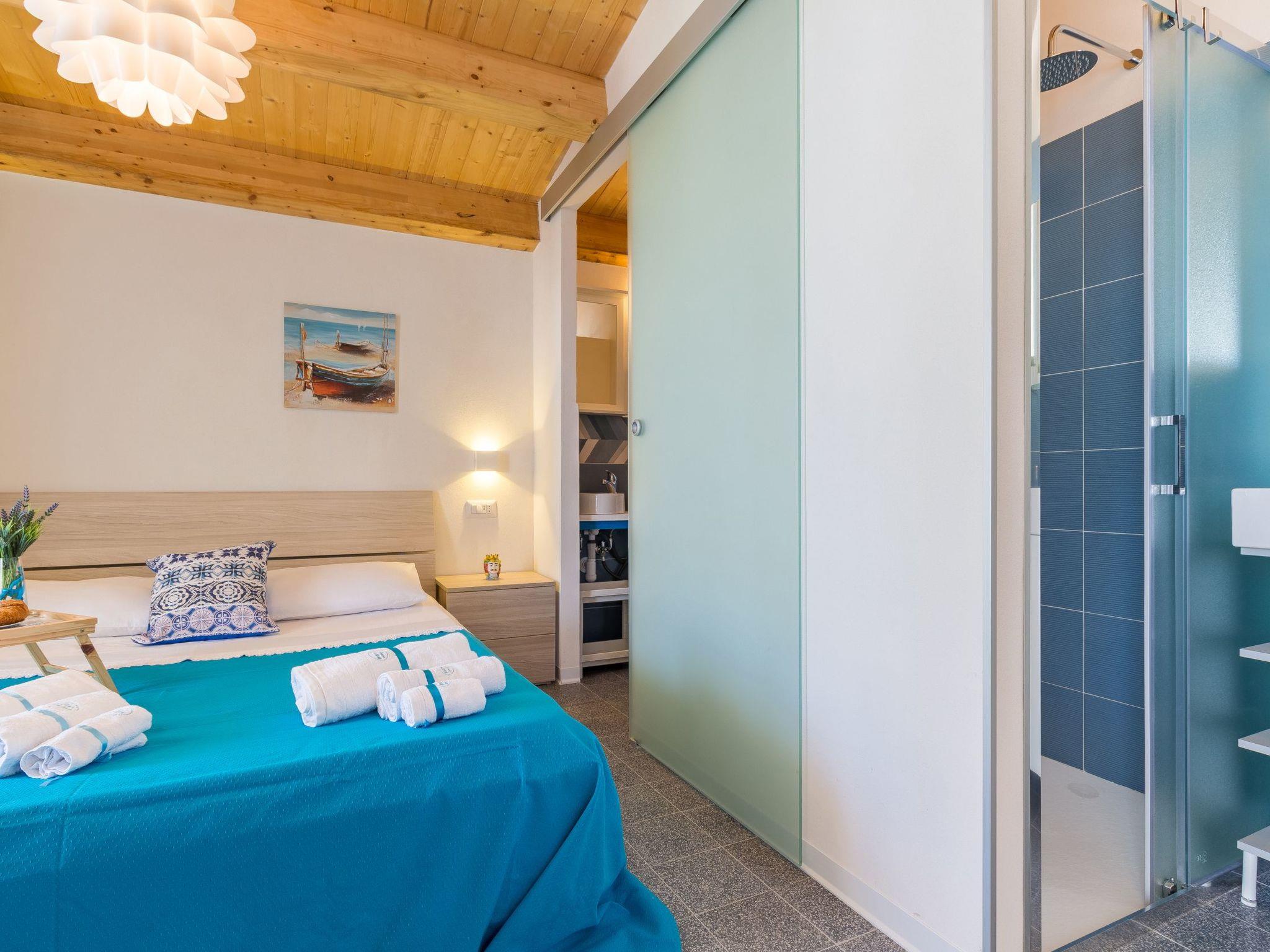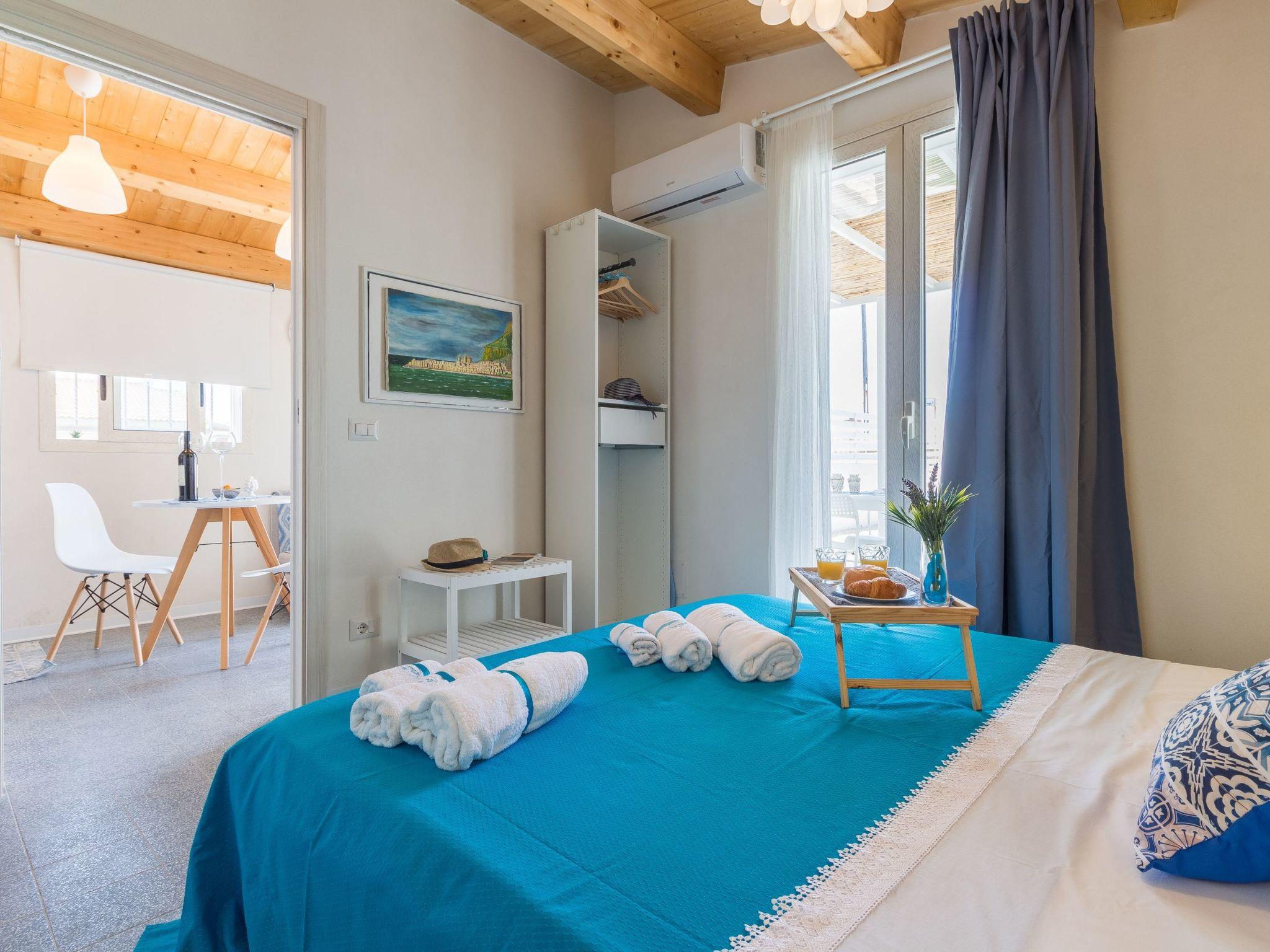 Das Schlafzimmer mit Doppelbett führt auf die Terrasse.