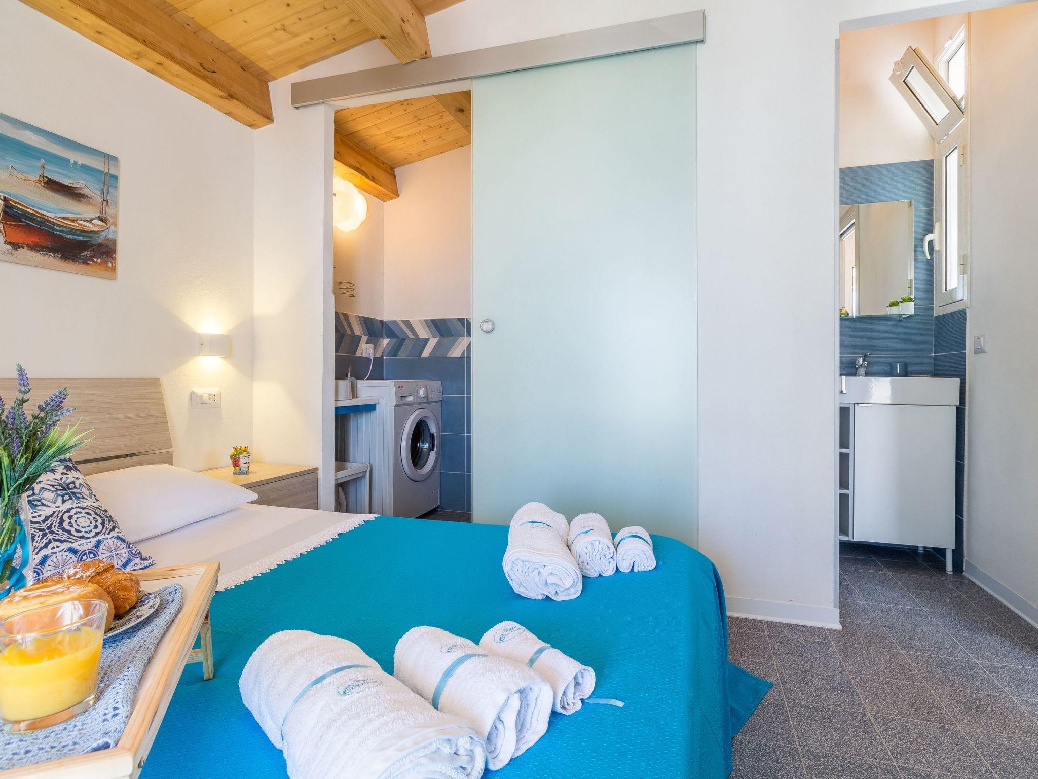 Unterkunft am Sandstrand (10 m) von Santa Maria del Focallo, mit einer großen möblierten Terrasse. Gut eingerichtet und in einer ruhigen Gegend gelegen, 2 km von der Küste von Punta Cirica und 5 km vom Strand der Bucht von Porto Ulisse entfernt.