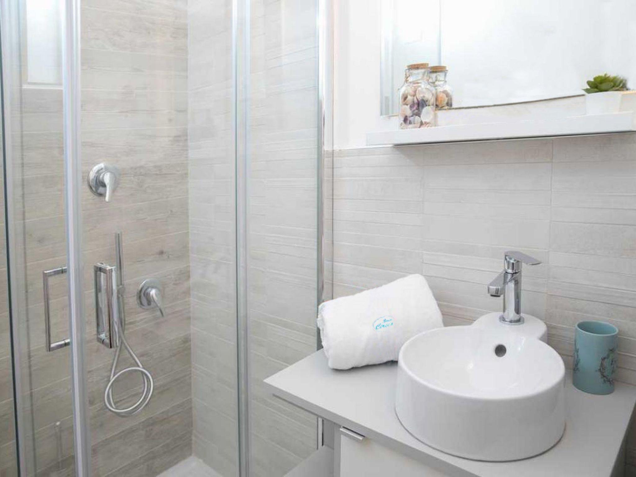Ein Bad mit Dusche.
