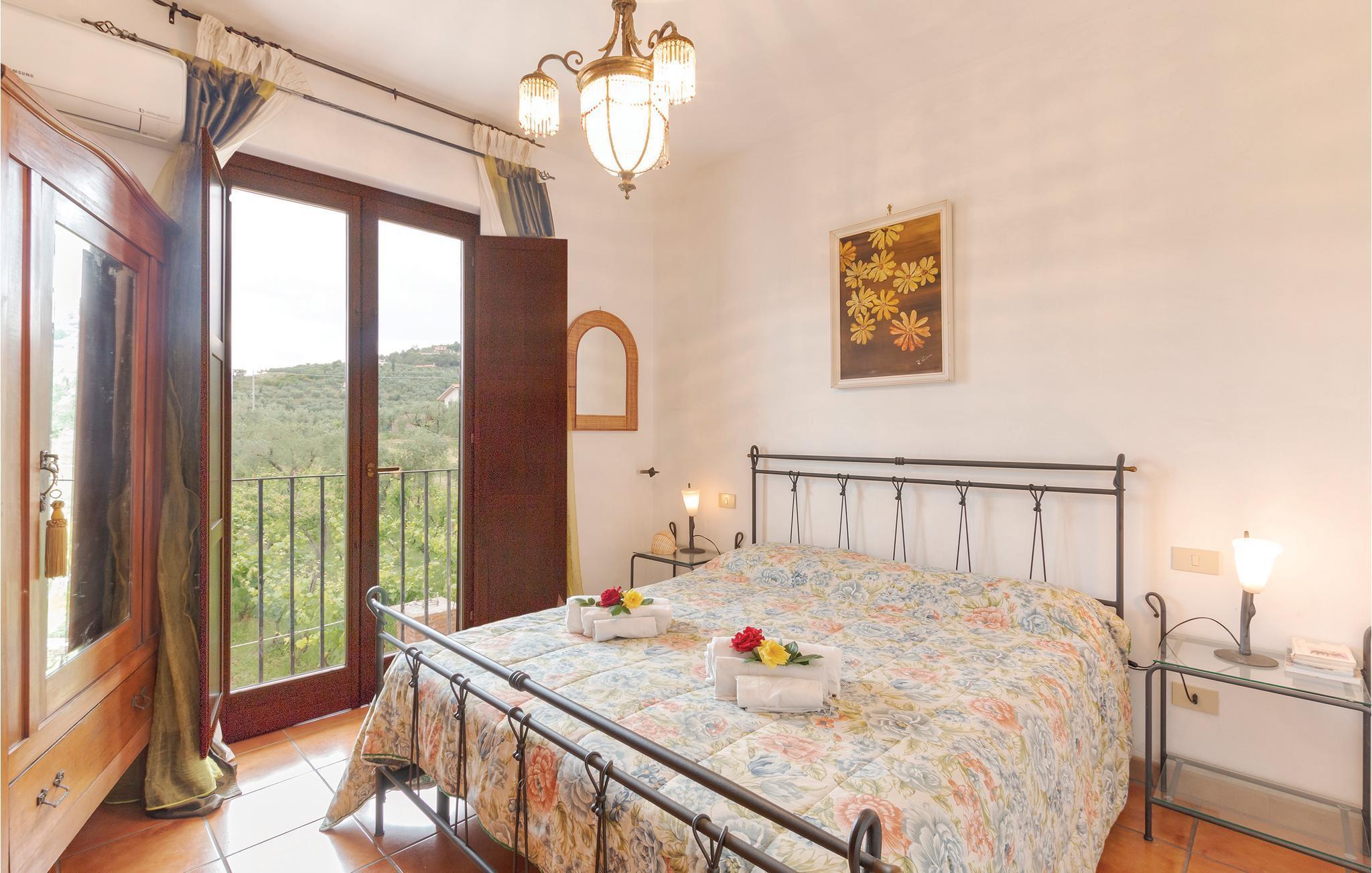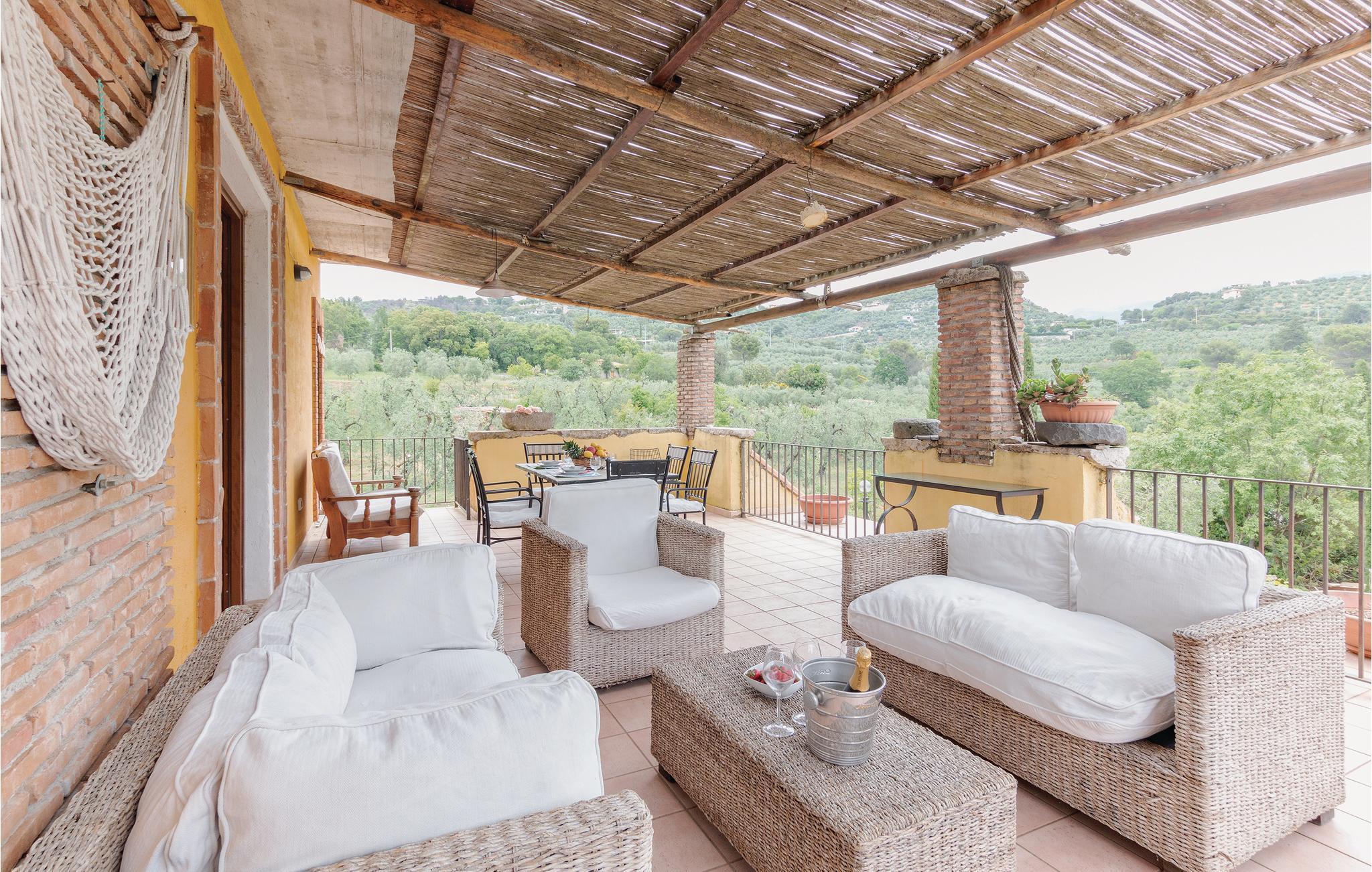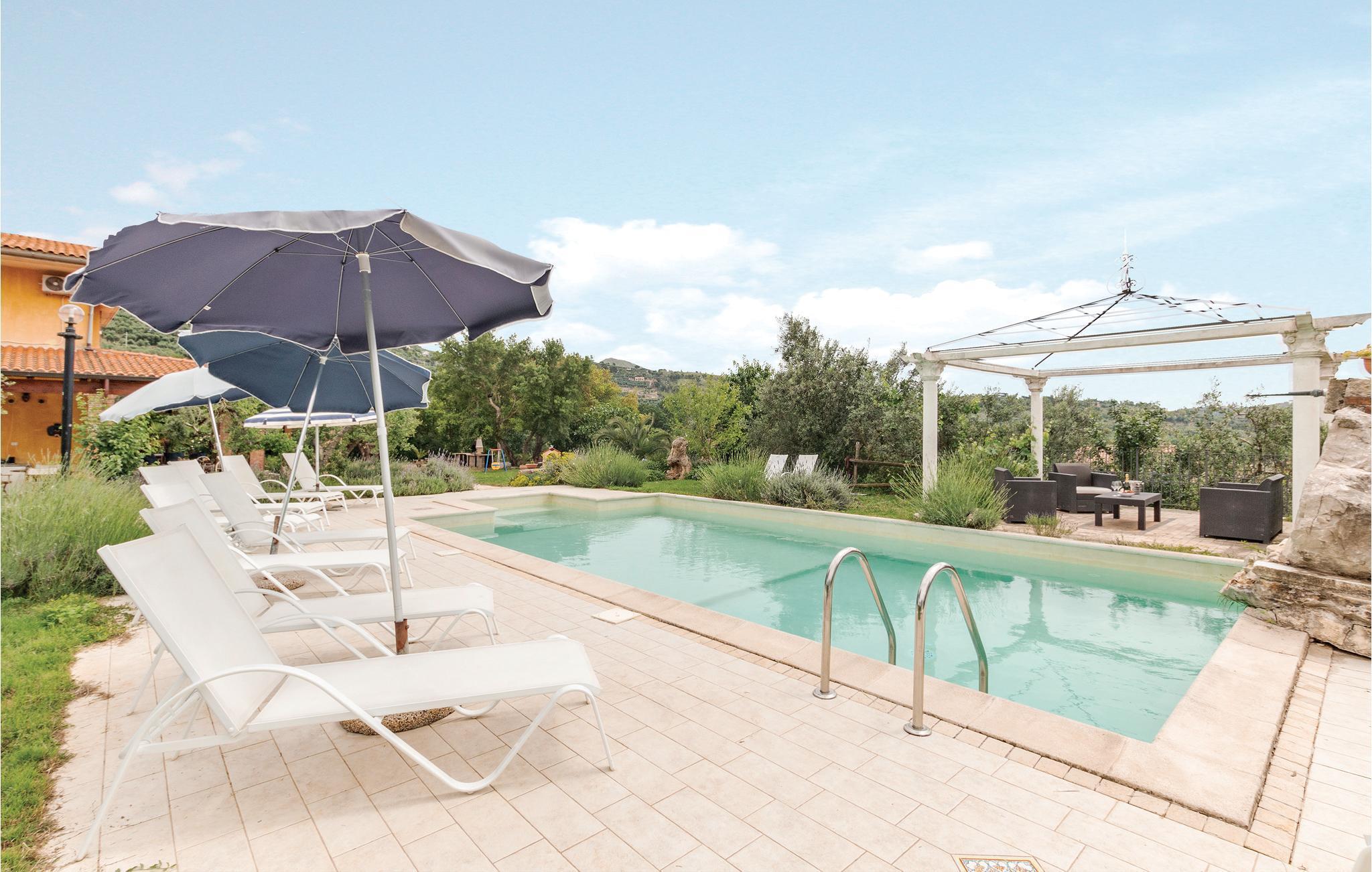 Große und gut ausgestattete Ferienvilla mit Privatpool, nur 10 km vom Strand von Sperlonga mit seiner malerischen Altstadt und archäologischen Stätten entfernt. Es liegt auf einem 1,5 Hektar großen Anwesen mit Olivenhainen, Weinbergen und Eichen, ein wahres Stückchen Paradies inmitten der grünen mediterranen Vegetation der Region Latium. Es liegt auf einem 1,5 Hektar großen Anwesen umgeben von Olivenbäumen, Weinbergen und Eichen, der ideale Ort also für einen ruhigen Urlaub in der Natur, ohne aber auf die Nähe der bekannten Touristenzentren verzichten zu müssen: Formia mit seinen Shoppingmöglichkeiten, dem Hafen und den Fähren zu den Inseln (12 km); Gaeta mit seinen ausgestatteten Strandbädern, dem Naturpark Monte Orlando und die mittelalterlichen Denkmäler der Altstadt (13 km); Sperlonga mit seinem malerischen Zentrum und archäologischen Stätten (10 km). In etwas mehr als eine Stunde erreicht man Rom und Neapel, ideale Ziele für ihre Tagesausflüge. Den Gäste steht ein großer rechteckiger und sandfarbiger Pool ausgestattet mit Sonnenliegen, ein großer Pavillon mit Sofas, eine Außendusche und eine geräumige Grillecke zur Verfügung . Das Haus besteht aus zwei Einheiten, diese sind intern nicht miteinander verbunden. Eine große, mit Tischen und Sofas möblierte, Terrasse erlaubt es den Gästen die kühlen Sommerabenden und ihre Mahlzeiten im Freien zu genießen. Der Wohnbereich erstreckt sich über zwei Etagen und besteht aus zwei, im inneren nicht miteinander verbundenen Einheiten. Erdgeschoss: Wohnung mit vier Doppelzimmern, zwei davon mit eigenem Bad, in einem der größeren Schlafzimmer gibt es die Möglichkeit eines Zustellbettes, ein großes Bad mit separater Dusche, ein geräumiger Wohnbereich unterteilt sich in Wohnzimmer mit Sofas und Sat-TV und Essbereich mit großem Tisch im venezianischen Stil. Die herrliche Küche bietet direkten Zugang zur großen Terrasse mit Gartenblick . Die erste Etage ist unabhängig vom Erdgeschoss: großer Eingangs- und Wohnbereich mit Kamin und helle Küche mit Blick auf die grüne Landschaft und eine mit Tischen und Stühlen ausgestattete Terrasse. Hier gibt es drei Doppelzimmer und zwei Bäder mit Dusche.