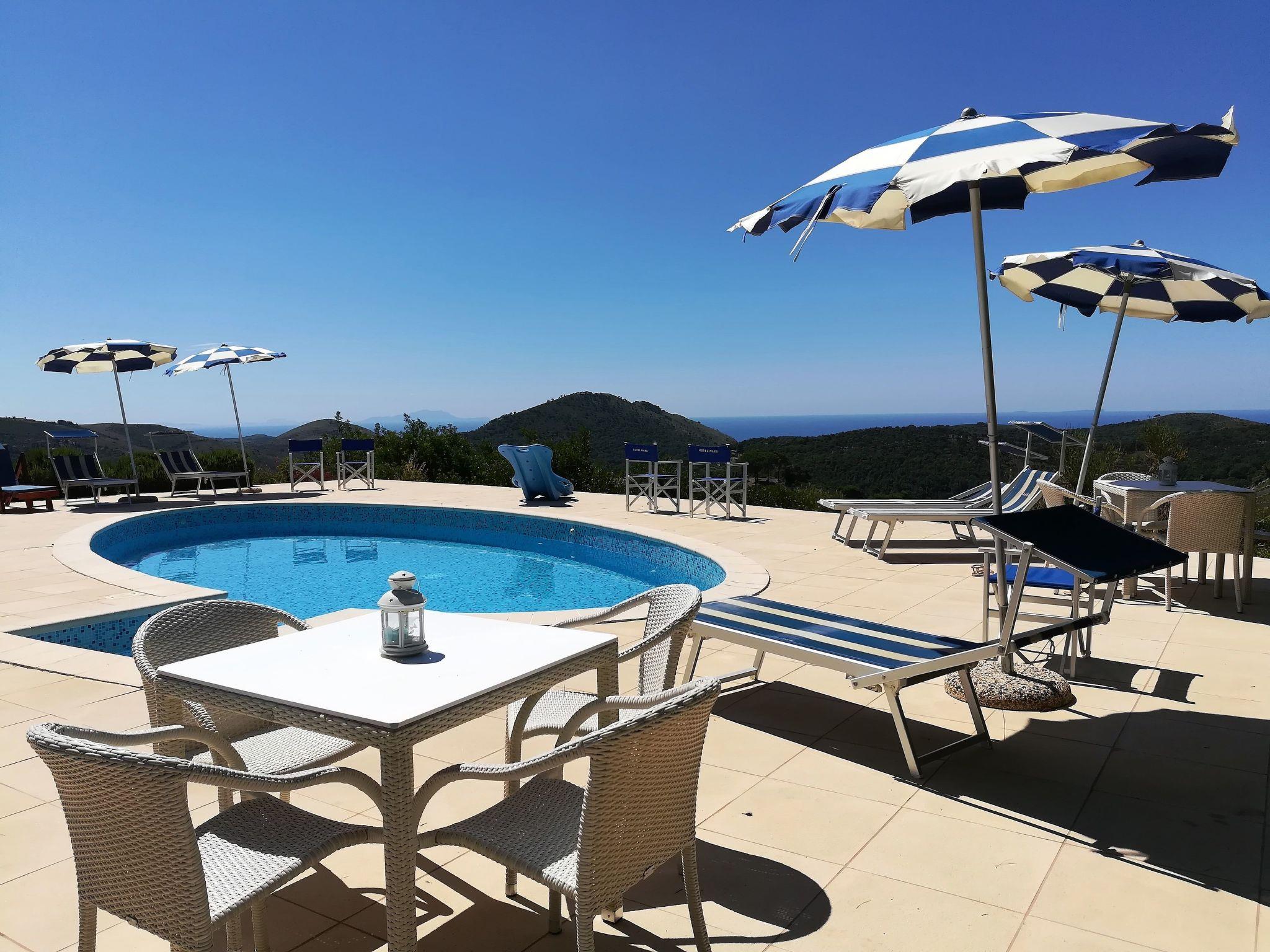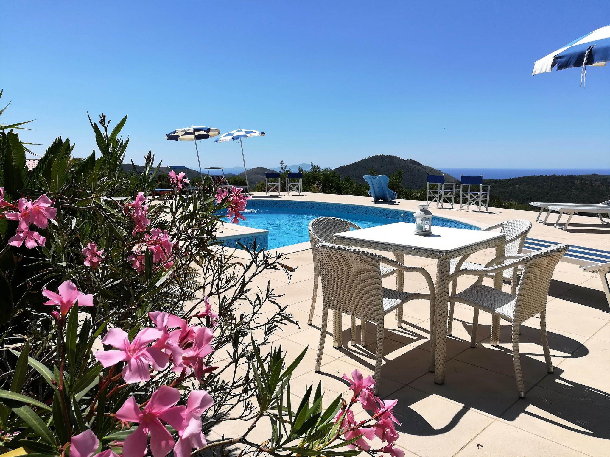 Das Grundstück und vor allem der Swimmingpool bieten einen herrlichen Blick auf das Meer und die Inseln Ponza, Ventotene und Ischia.