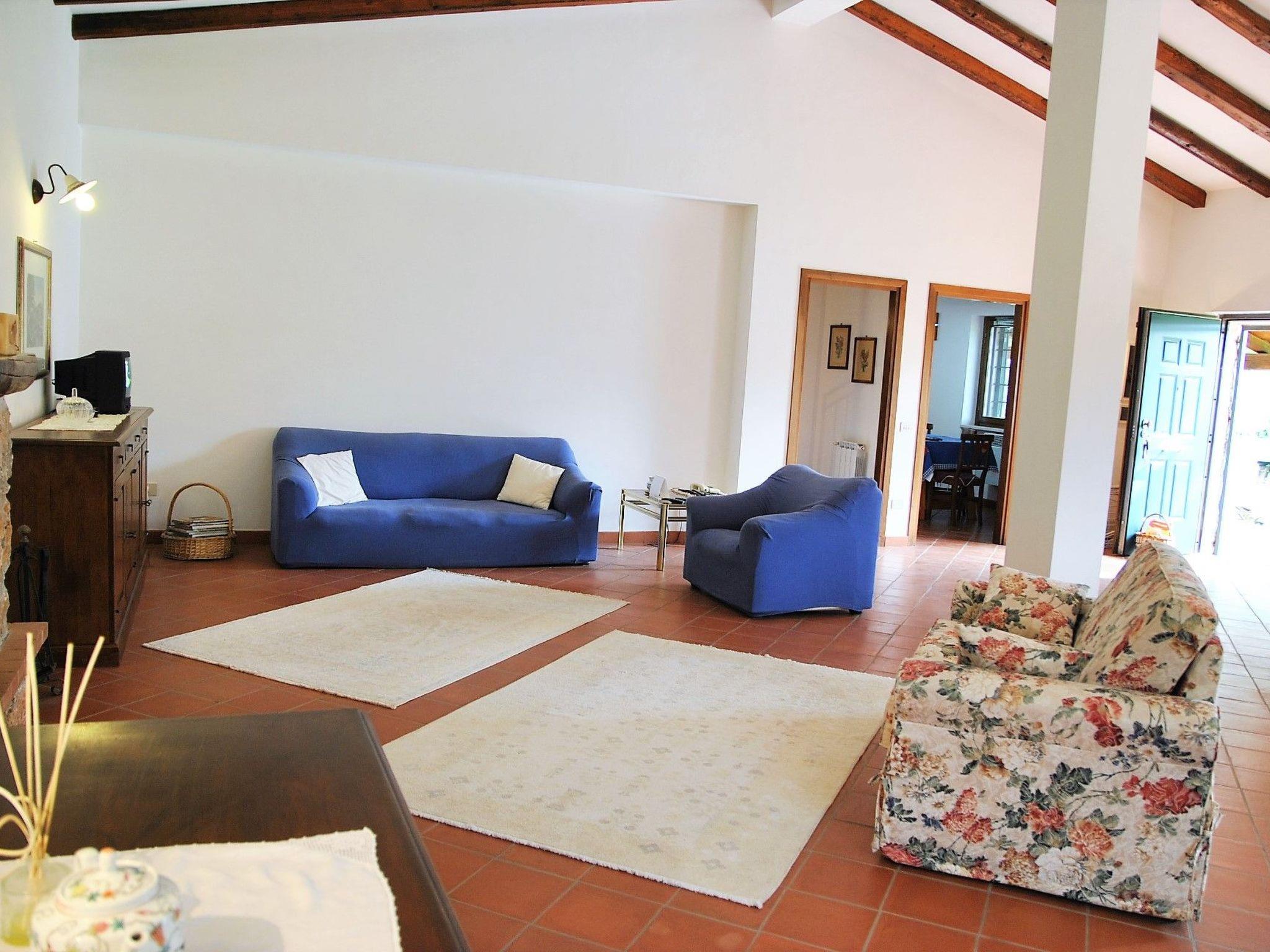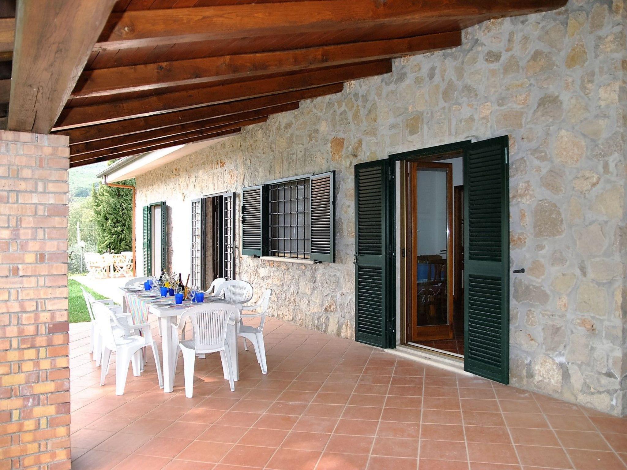 Die Villa, komplett aus Stein, hat zwei Etagen und kann bis zu 8 Personen beherbergen. Im Erdgeschoss gibt es ein großes Wohnzimmer mit einem großen Kamin und Flügeltüren, die direkt nach draußen führen und den Blick auf den Garten freigeben. Freigelegte Holzbalken prägen den Raum, der einfach, aber funktionell eingerichtet ist. Eine große gemauerte Küche ist hervorragend ausgestattet mit Backofen, Geschirrspüler, Waschmaschine, 5-Platten-Herd, ein Schlafzimmer mit Doppelbett und ein komplettes Bad mit Dusche. Eine bequeme gemauerte Treppe führt in das Obergeschoss, in dem sich drei Doppelschlafzimmer und ein komplettes Bad mit Dusche befinden.