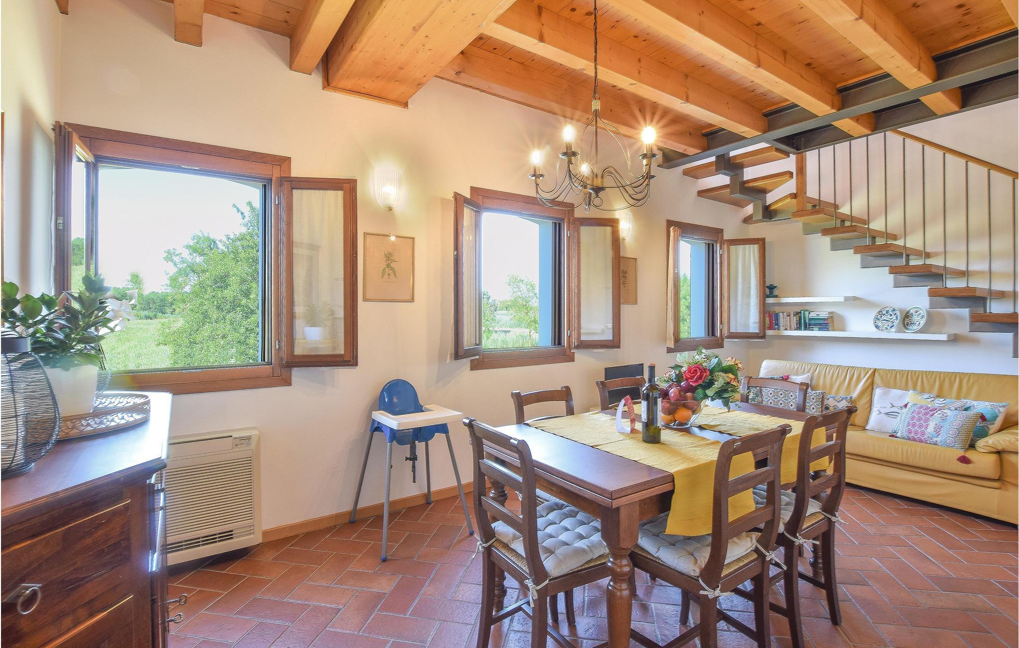 Ferienwohnungen in einem antiken renovierten Bauernhaus mit vier Wohneinheiten auf drei Etagen, gelegen in einem der schönsten und renommiertesten Fischtäler der Lagune von Venedig. Um die Unterkunft erstrecken sich 10 Hektar Wald und Lagune, reich an Enten und Fischen. In der Naturwiese befindet sich der mit Liegen, Stühlen, Sonnnenschirmen und Gartenmöbeln ausgestattete Pool, sowie ein Gazebo mit Tischen, Bänken und Grill. Wenige Schritte vom Fluss Sile entfernt ist eine Landungsbrücke mit vier privaten Anlegestellen, so dass die Gäste mit dem Boot den Fluss entlang zum nahen Meer oder in den Lagunenkanälen zu den Inseln fahren können. Safe und Haartrockner vorhanden. Entfernungen: Die Strände vom Lido di Jesolo mit Sandstrand sind 800 m (nur Fußgänger- oder Fahrradweg) oder 12 km mit dem Auto entfernt; ein Golfplatz ist 1,5 km (nur Fußgänger- oder Fahrradweg) oder 15 km mit dem Auto entfernt. Jesolo mit Geschäften aller Art und Lokalen 10 Km. Fähre nach Venedig (30 Minuten Schiffahrt) und zu den Inseln Burano, Torcello und Murano in ca. 30 Autominuten erreichbar. Die einmalige Stadt Venedig liegt etwa 51 Km entfernt. Zur historischen Stadt Treviso sind es etwa 48 km. Moskitonetze an allen Fenstern, Fön. Für jedes Apartment stehen 2 Fahrräder zur Verfügung. Siehe auch IVK225.