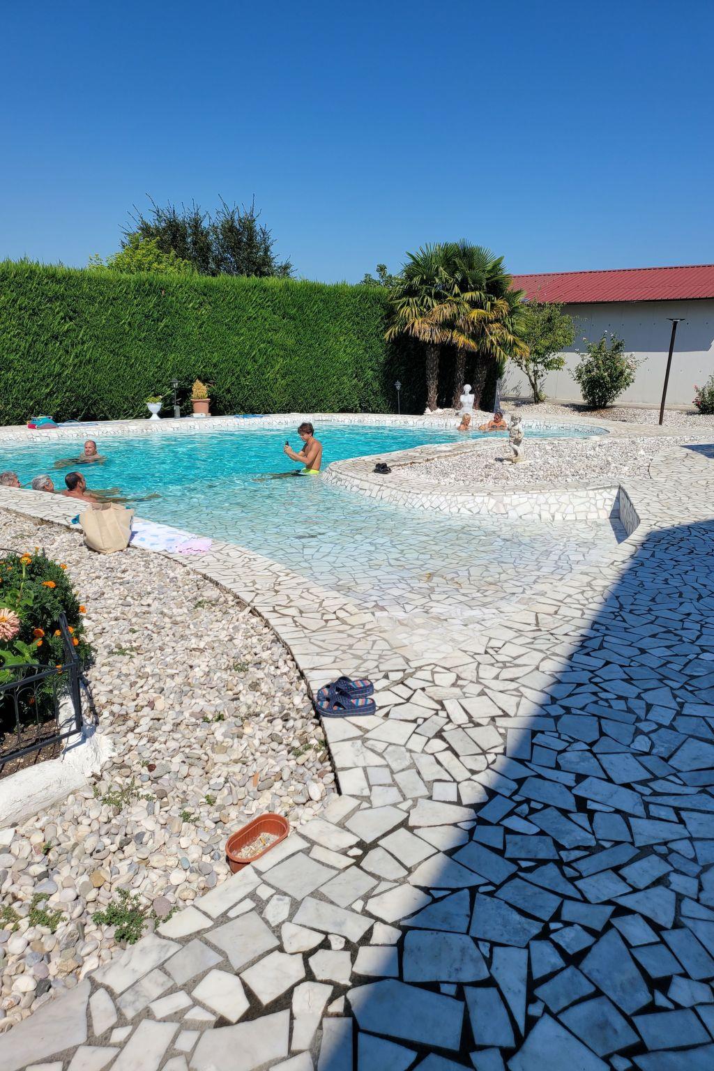 Im Außenbereich zeichnet sich die Villa Jolanda durch ihren Gemeinschaftsgarten aus, ein Paradies, in dem Sie sich entspannen oder auf Entdeckungstour gehen können. Ein überdachter Parkplatz bietet eine sichere Unterbringung für Ihr Fahrzeug, und es gibt auch genügend Abstellmöglichkeiten für Ihre Fahrräder. Sie werden überrascht sein, einen Swimmingpool, Liegestühle, einen Pavillon für das Frühstück im Freien, einen Grill, ein Waschbecken, Sonnenschirme und eine Außendusche vorzufinden. Es wurde an alles gedacht, um Ihnen ein Höchstmaß an Entspannung zu bieten, einschließlich eines 3000 Quadratmeter großen Grundstücks, das auch für das Parken von Wohnmobilen mit einem Picknickplatz ausgestattet ist.